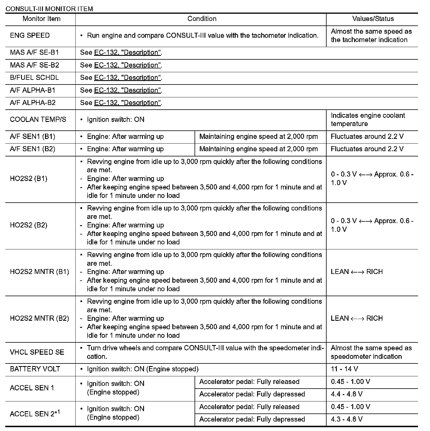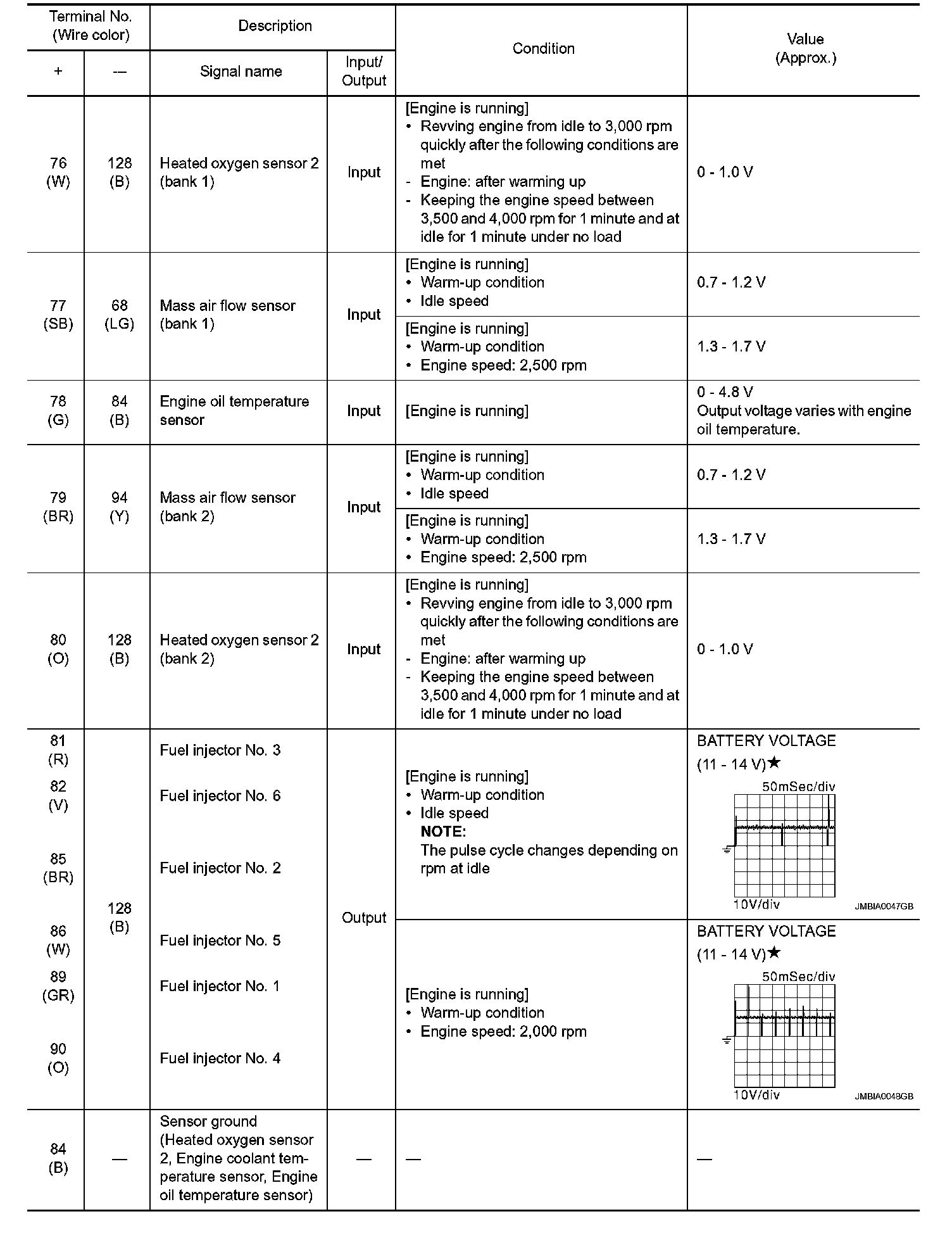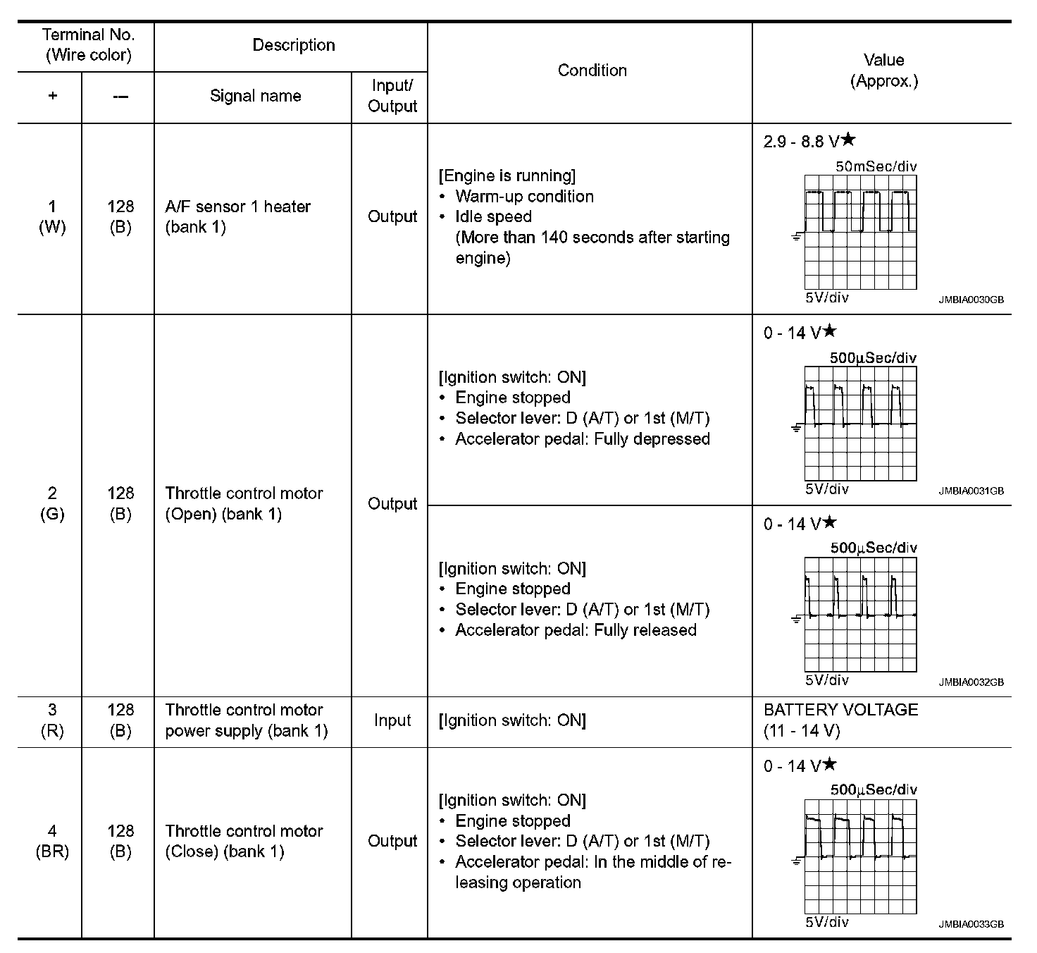 - Specification data are output/input values which are detected or supplied by the ECM at the connector.