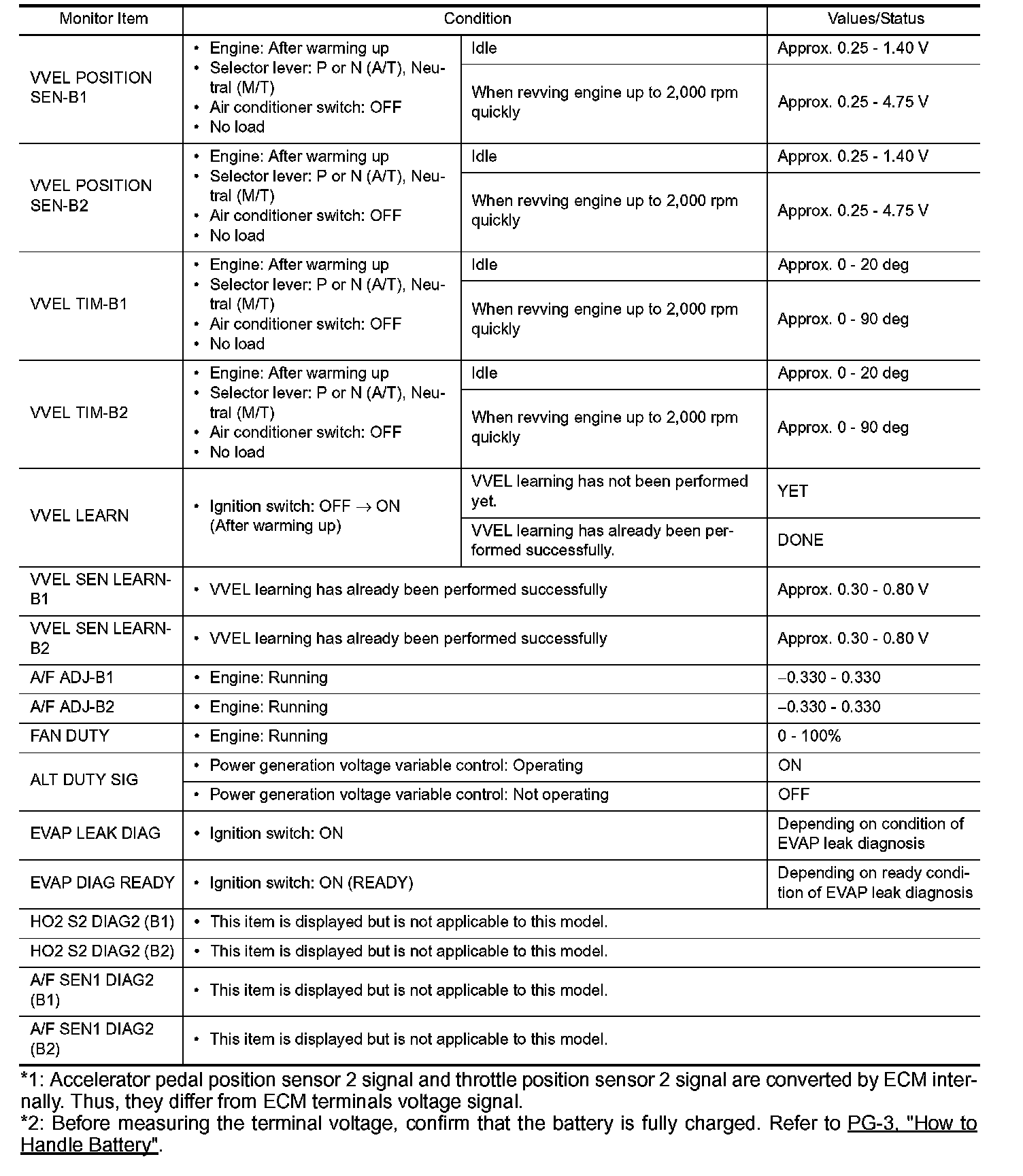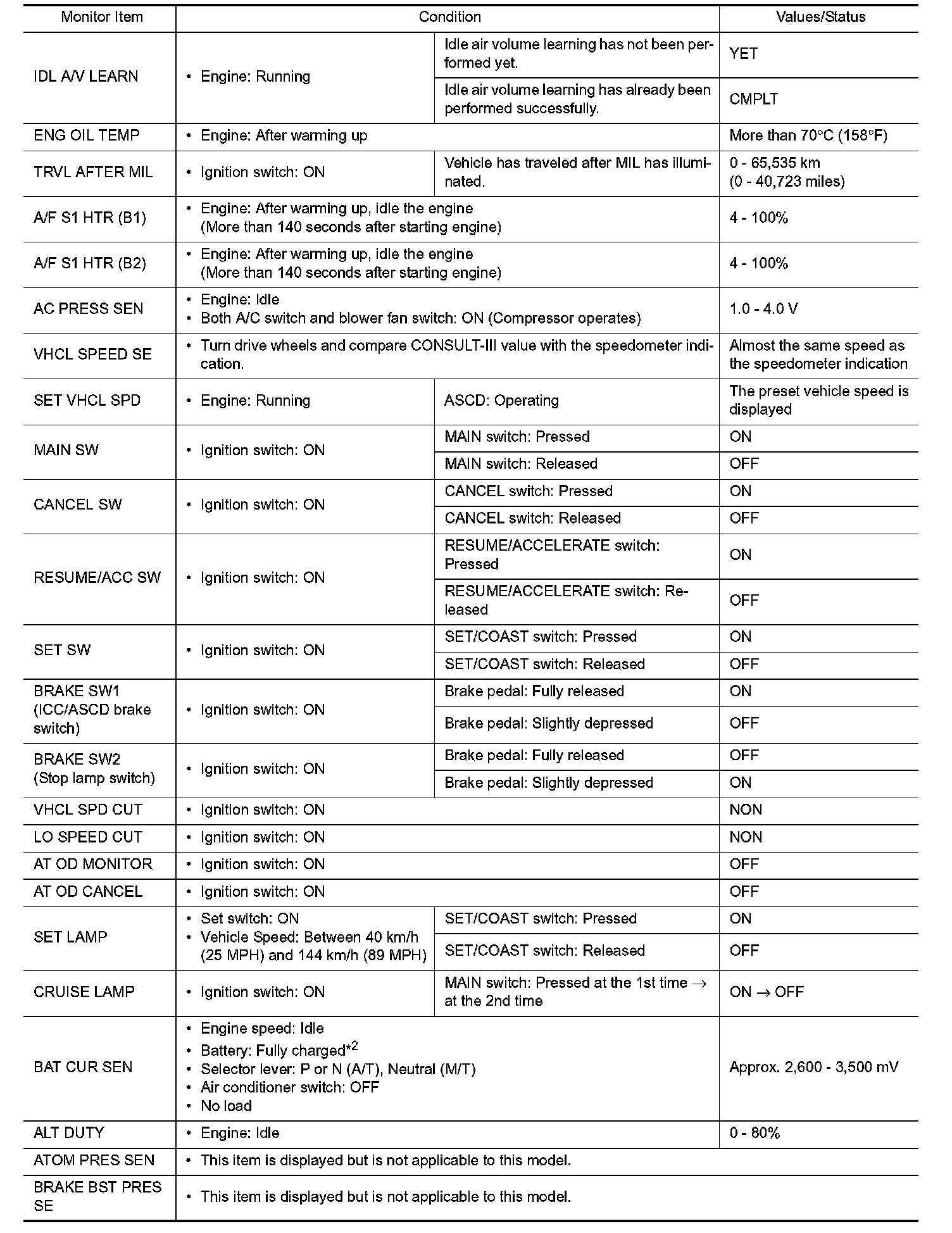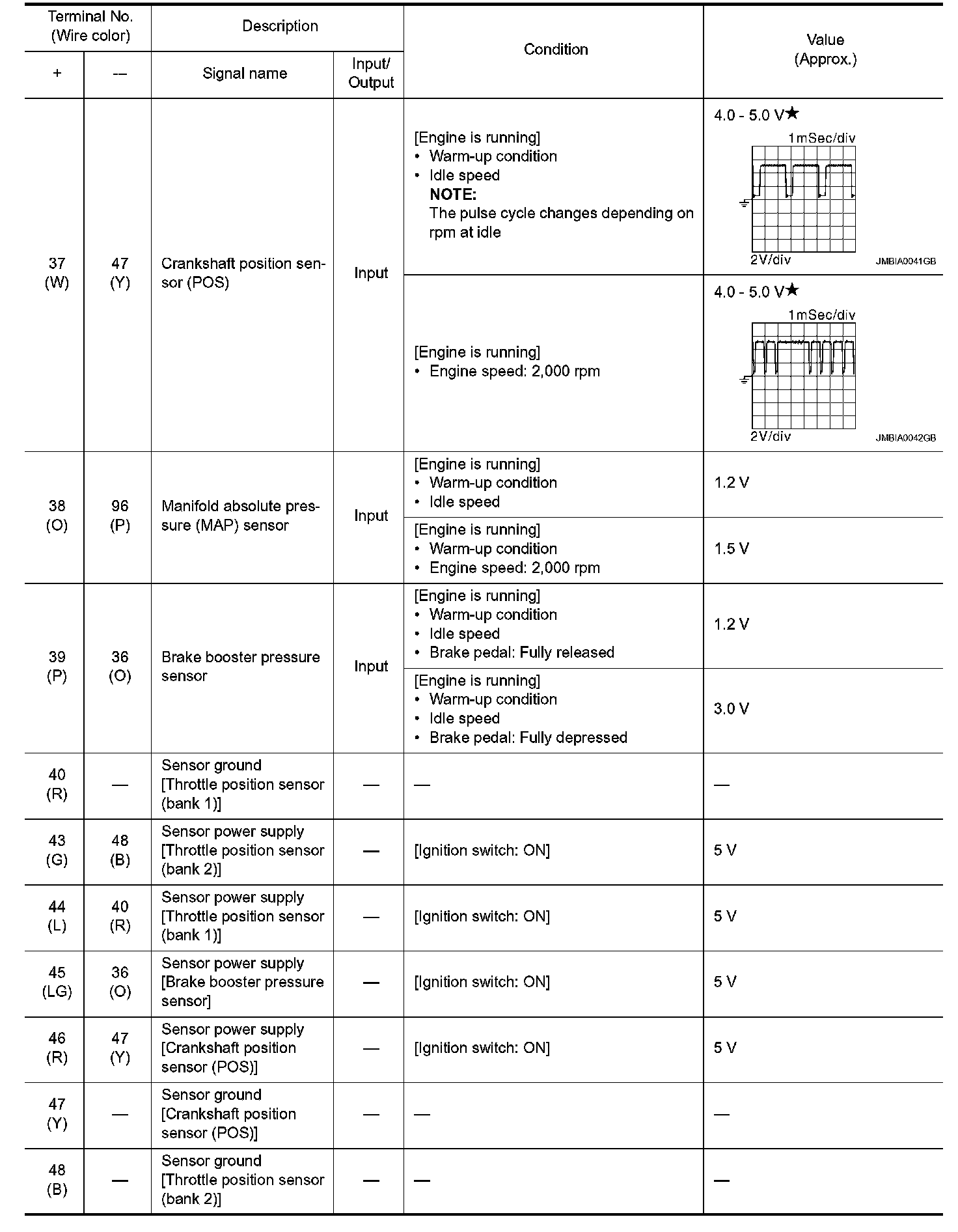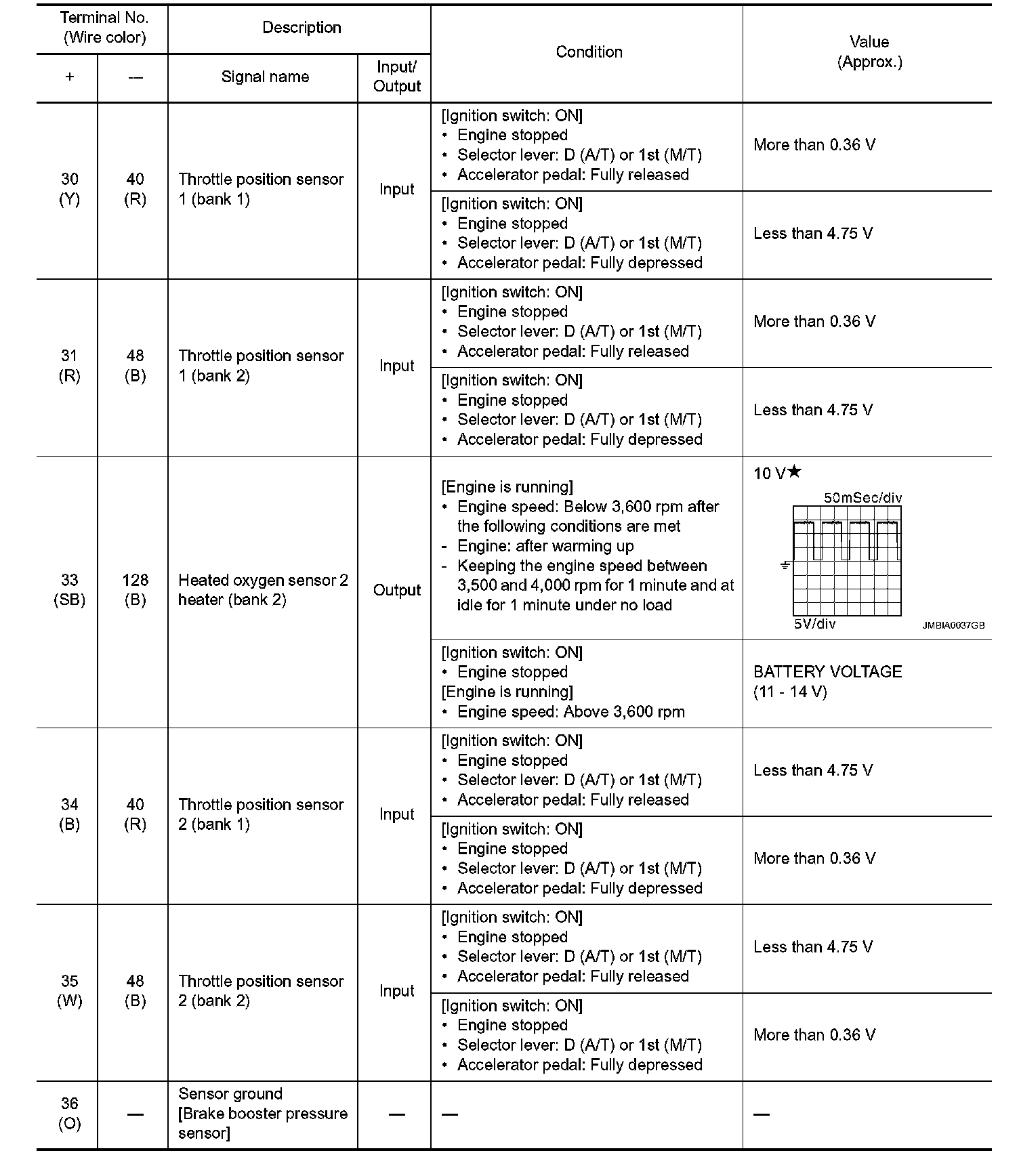 - Specification data are output/input values which are detected or supplied by the ECM at the connector.