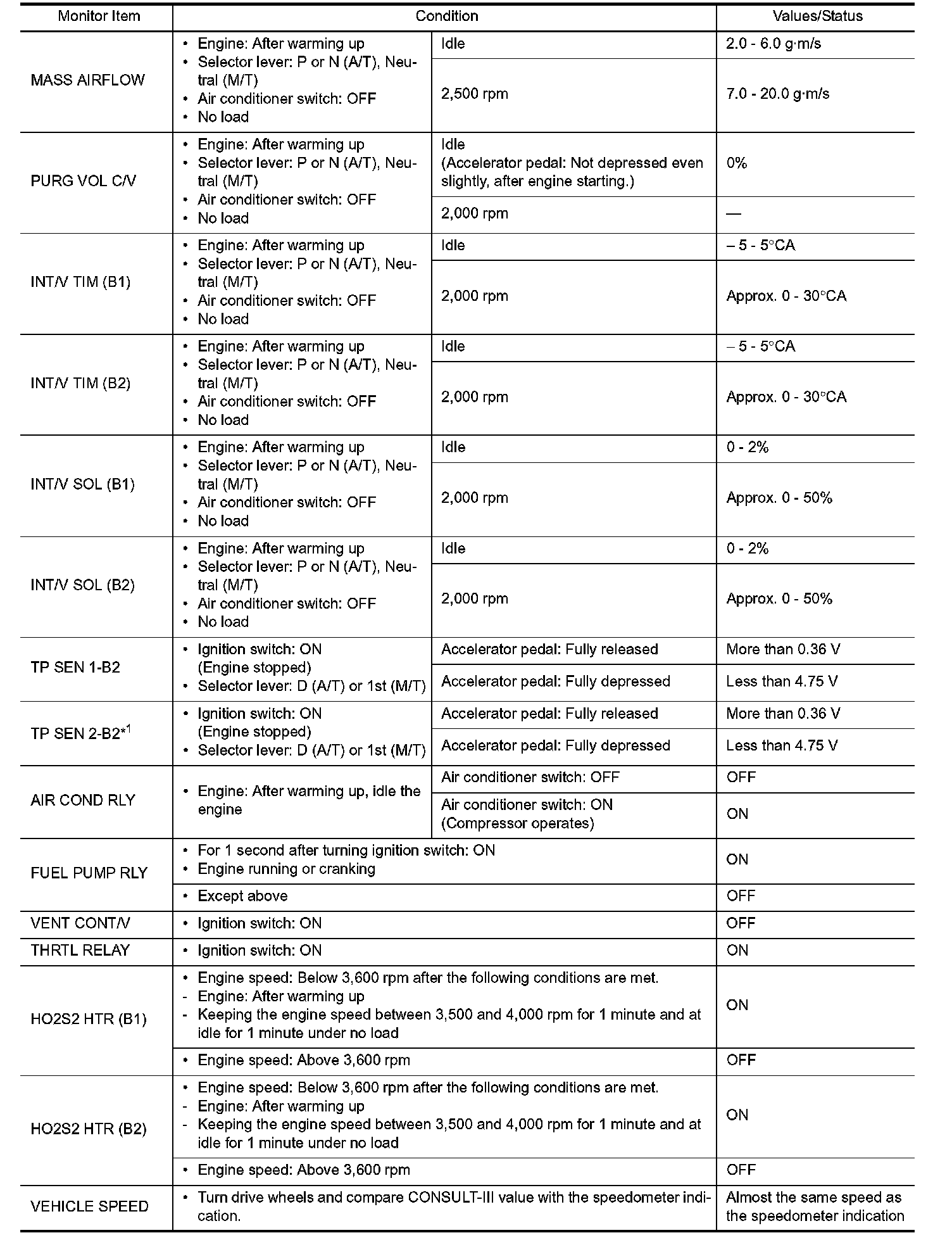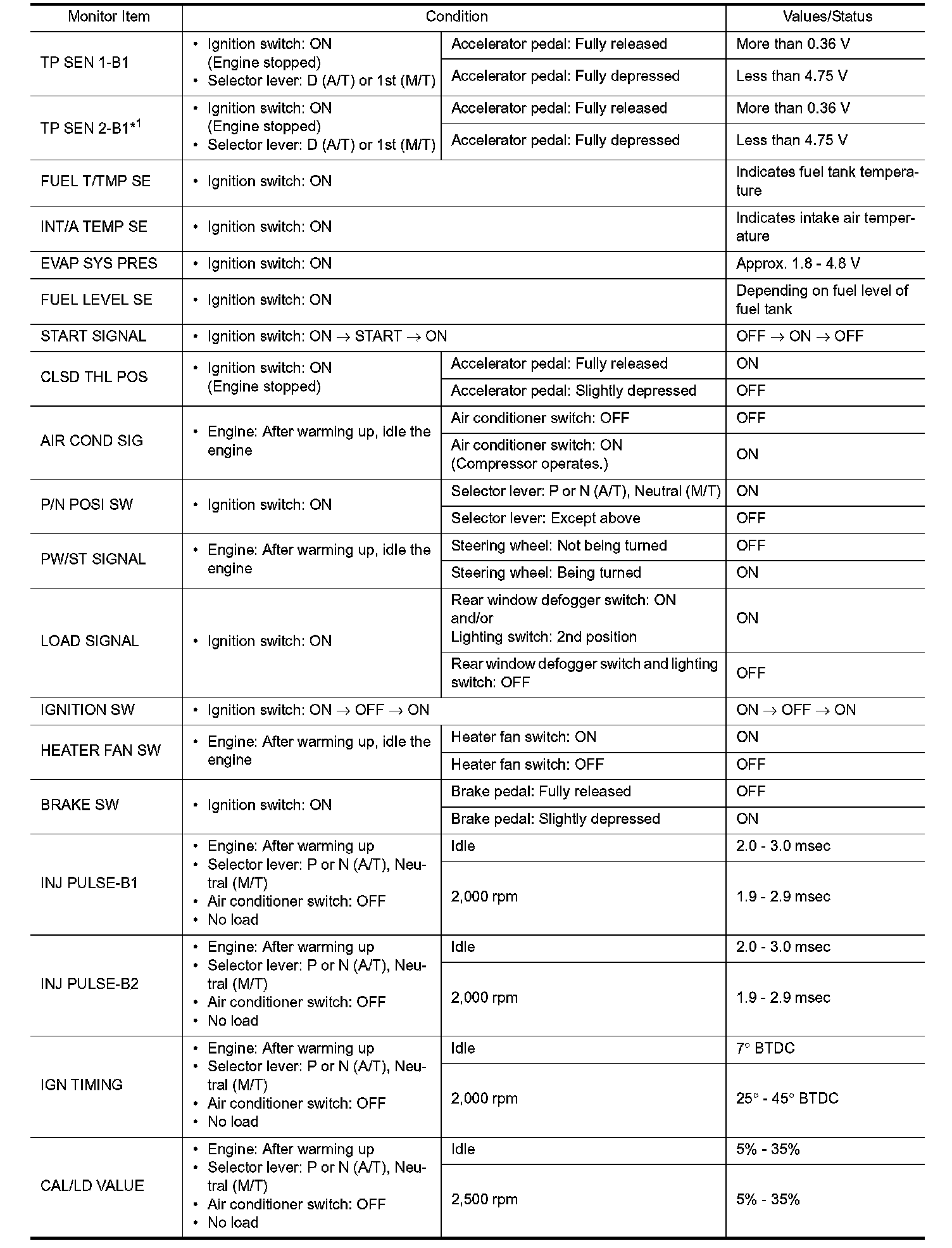 i. e. Adjust ignition timing with a timing light before monitoring IGN TIMING, because the monitor may show the specification data in spite of the ignition timing not being adjusted to the specification data. This IGN TIMING monitors the data calculated by the ECM according to the signals input from the camshaft position sensor and other ignition timing related sensors.