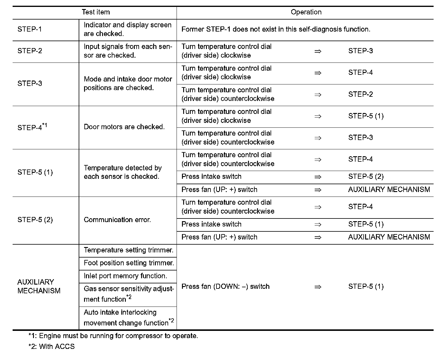 - If battery voltage drops below 12 V during diagnosis STEP-3, door motor speed becomes slower and as a result, the system may generate an error even when operation is normal. Start engine before performing this diagnosis to avoid this.