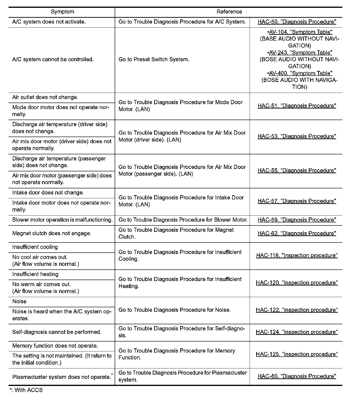 Symptom Table