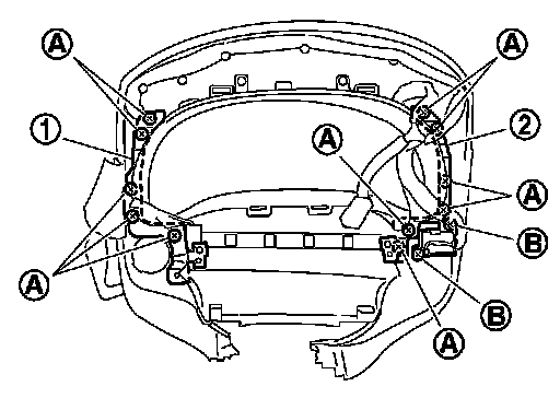 2. Remove screws (A) and remove bracket RH (1), LH (2).