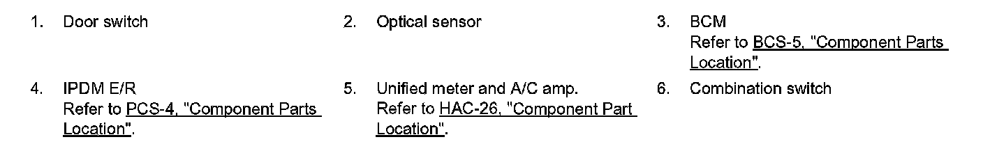 AUTO LIGHT SYSTEM : Component Parts Location