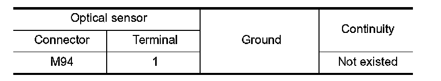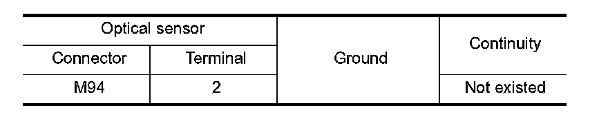 Check the continuity between the optical sensor harness connector and the ground.
