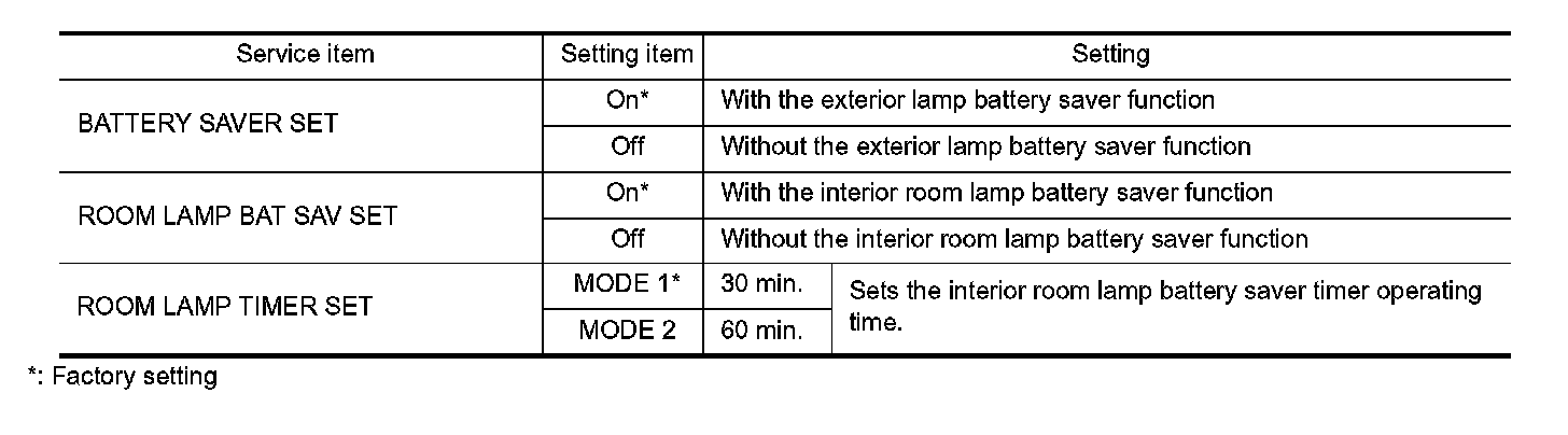 BATTERY SAVER : CONSULT-III Function (BCM - BATTERY SAVER)
