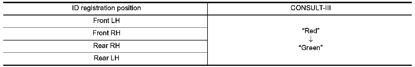 Perform the ID registration procedure starting from the vehicle front left wheel, then repeat the procedure in the order of the front right wheel, rear right wheel, and rear left wheel.