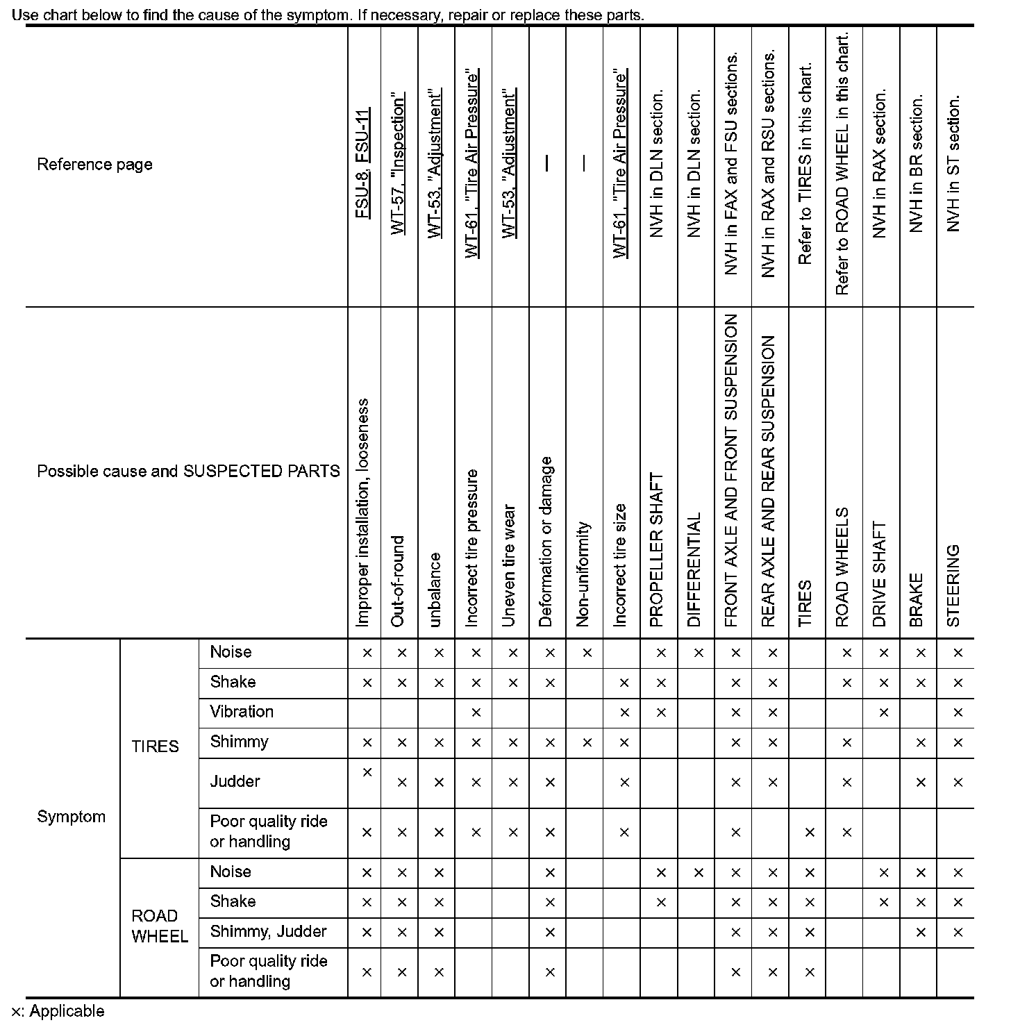 NVH Troubleshooting Chart: