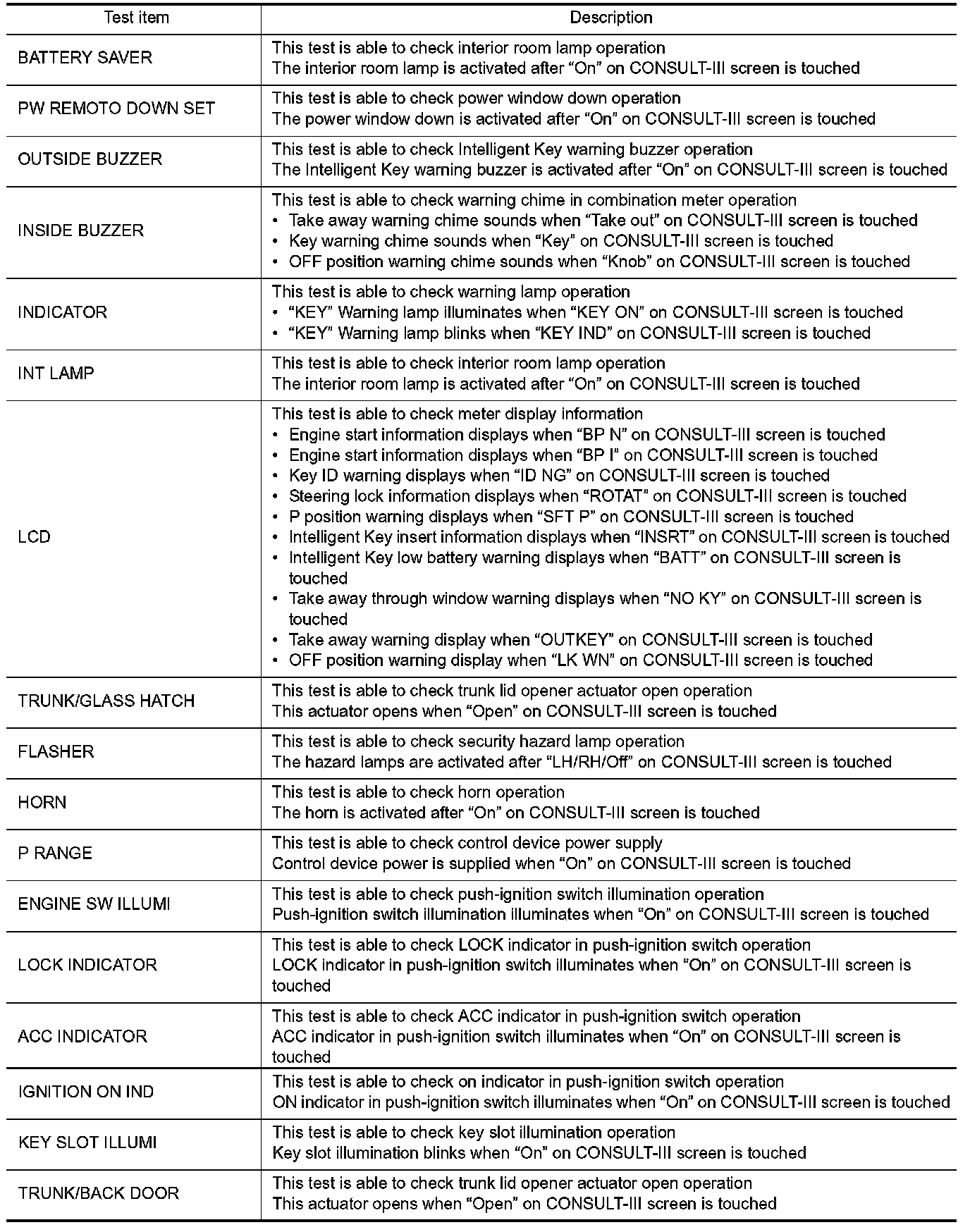 CONSULT-III Function (BCM - Intelligent Key)