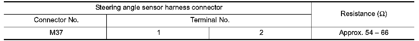 2. Check the resistance between the steering angle sensor harness connector terminals.