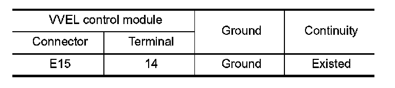 2. Check the continuity between VVEL control module harness connector and ground.