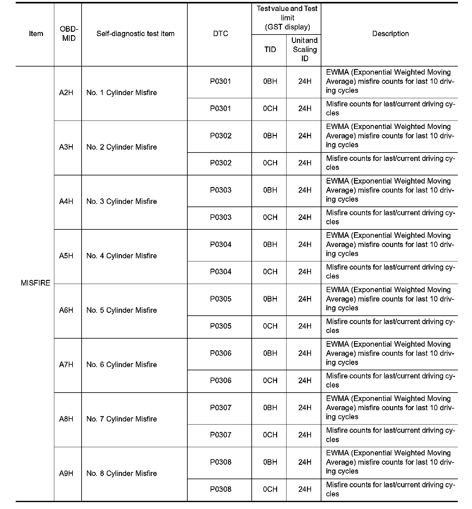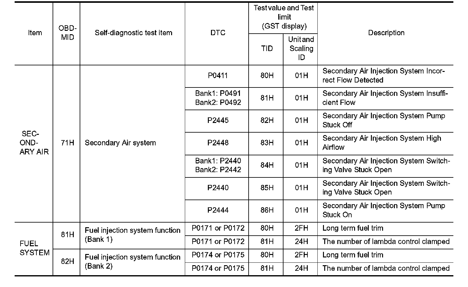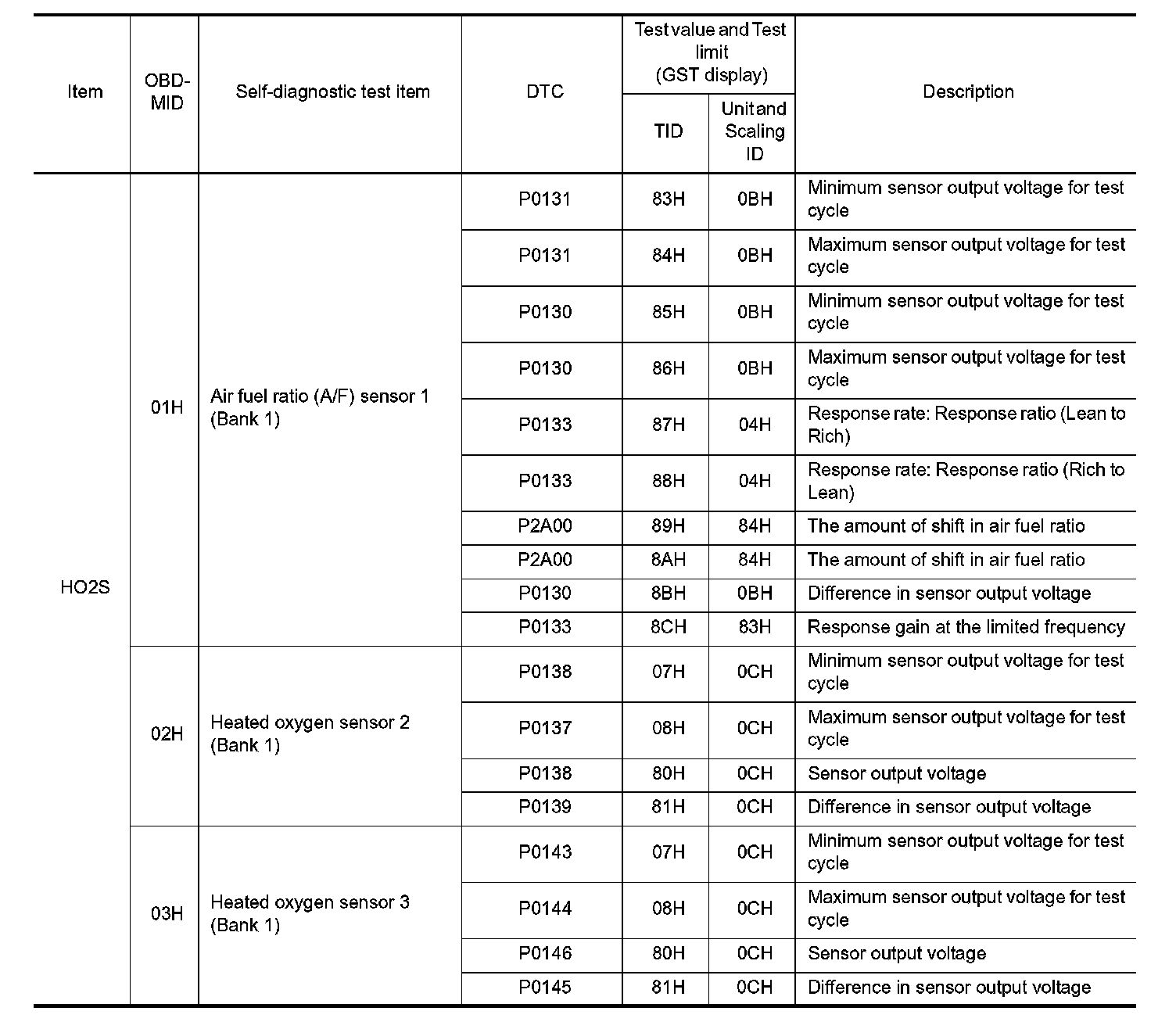 These data (test value and test limit) are specified by On Board Monitor ID (OBDMID), Test ID (TID), Unit and