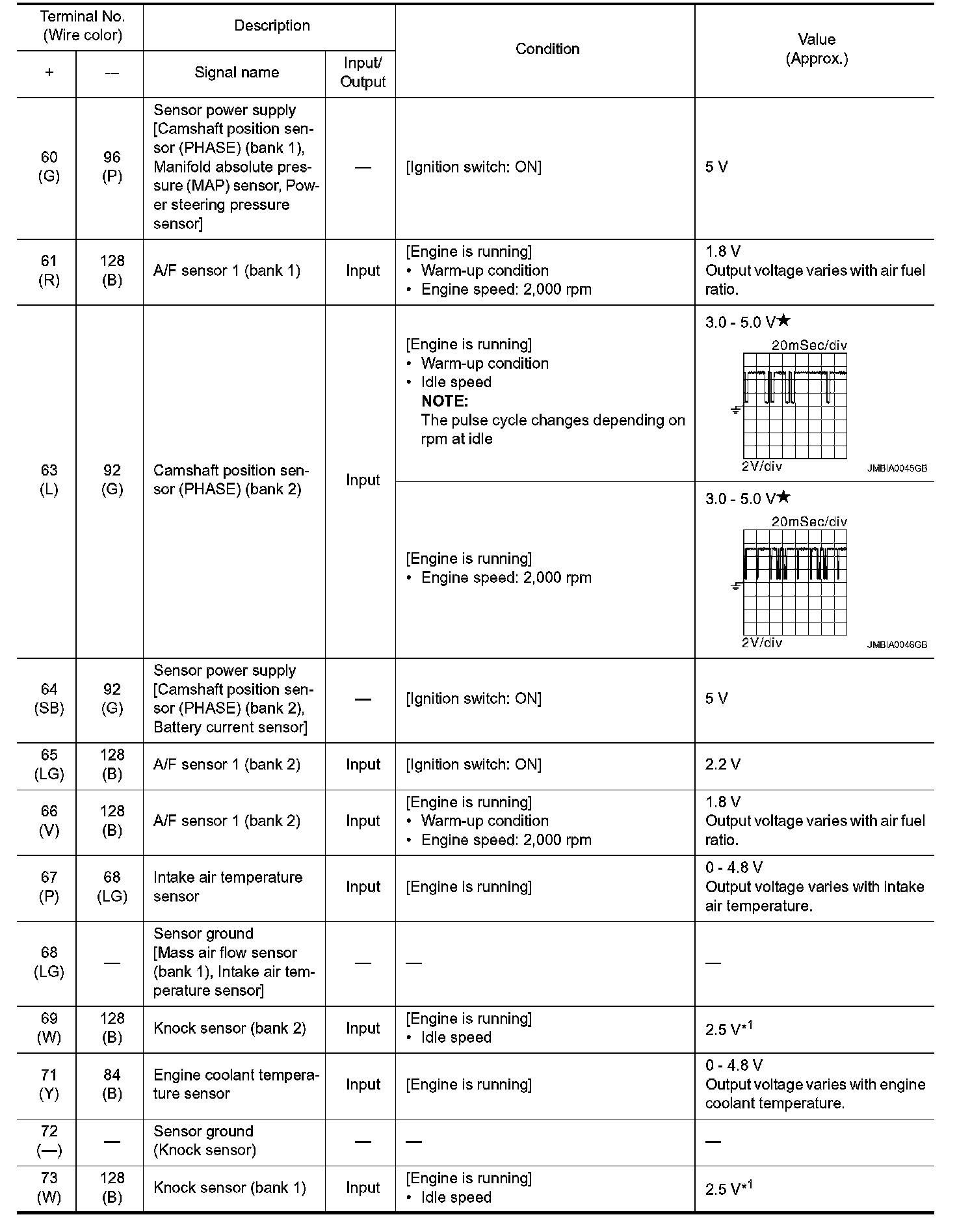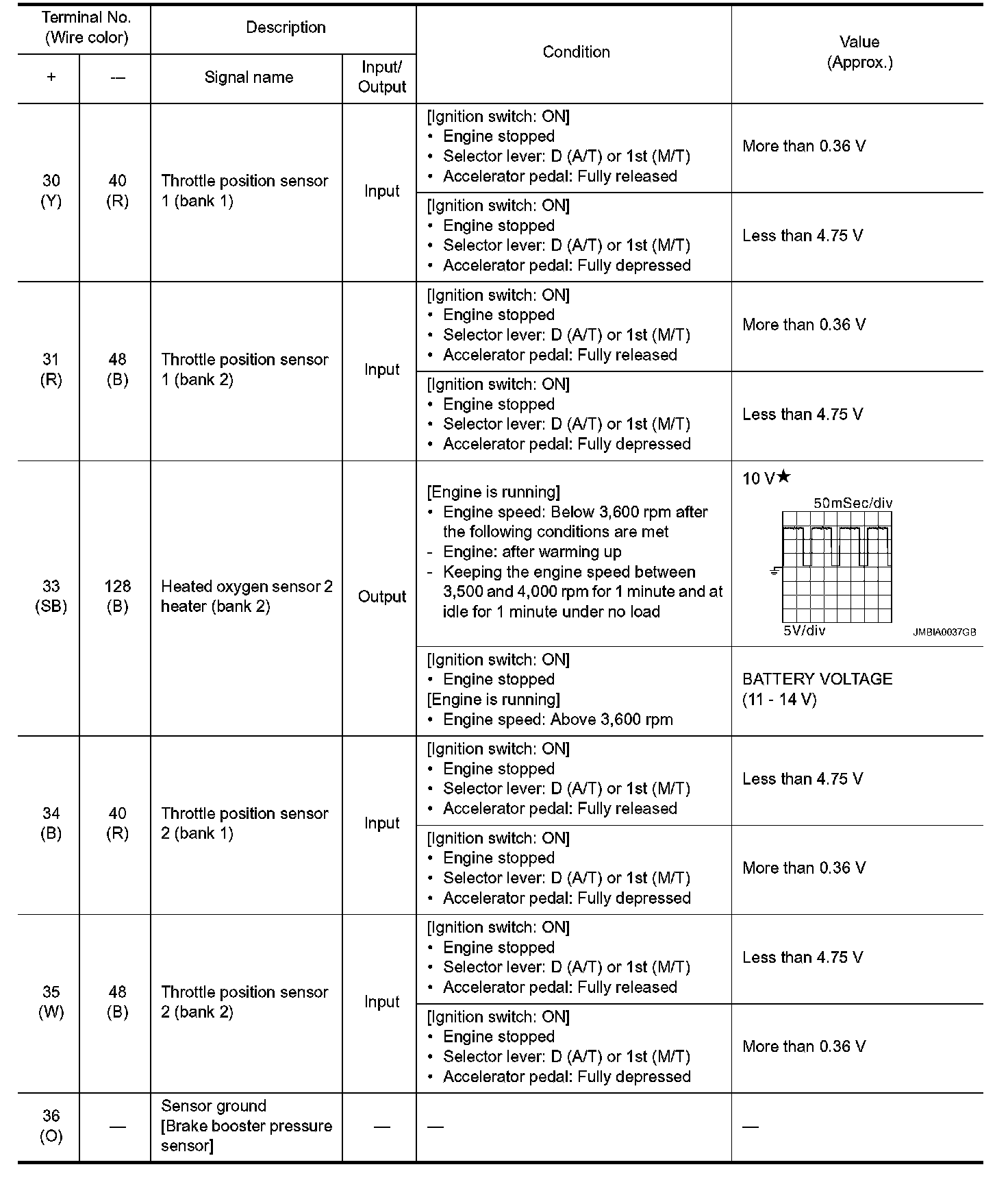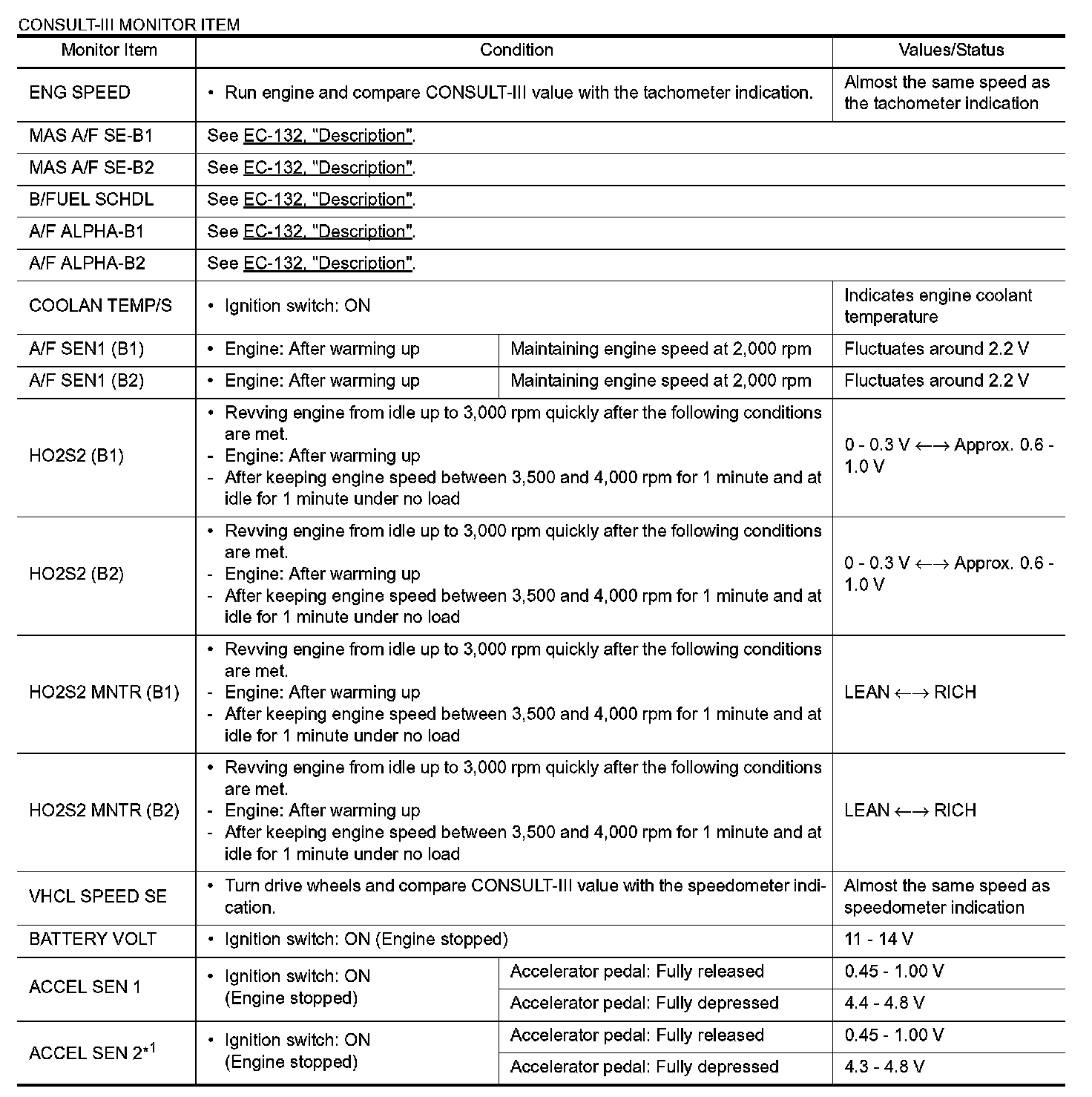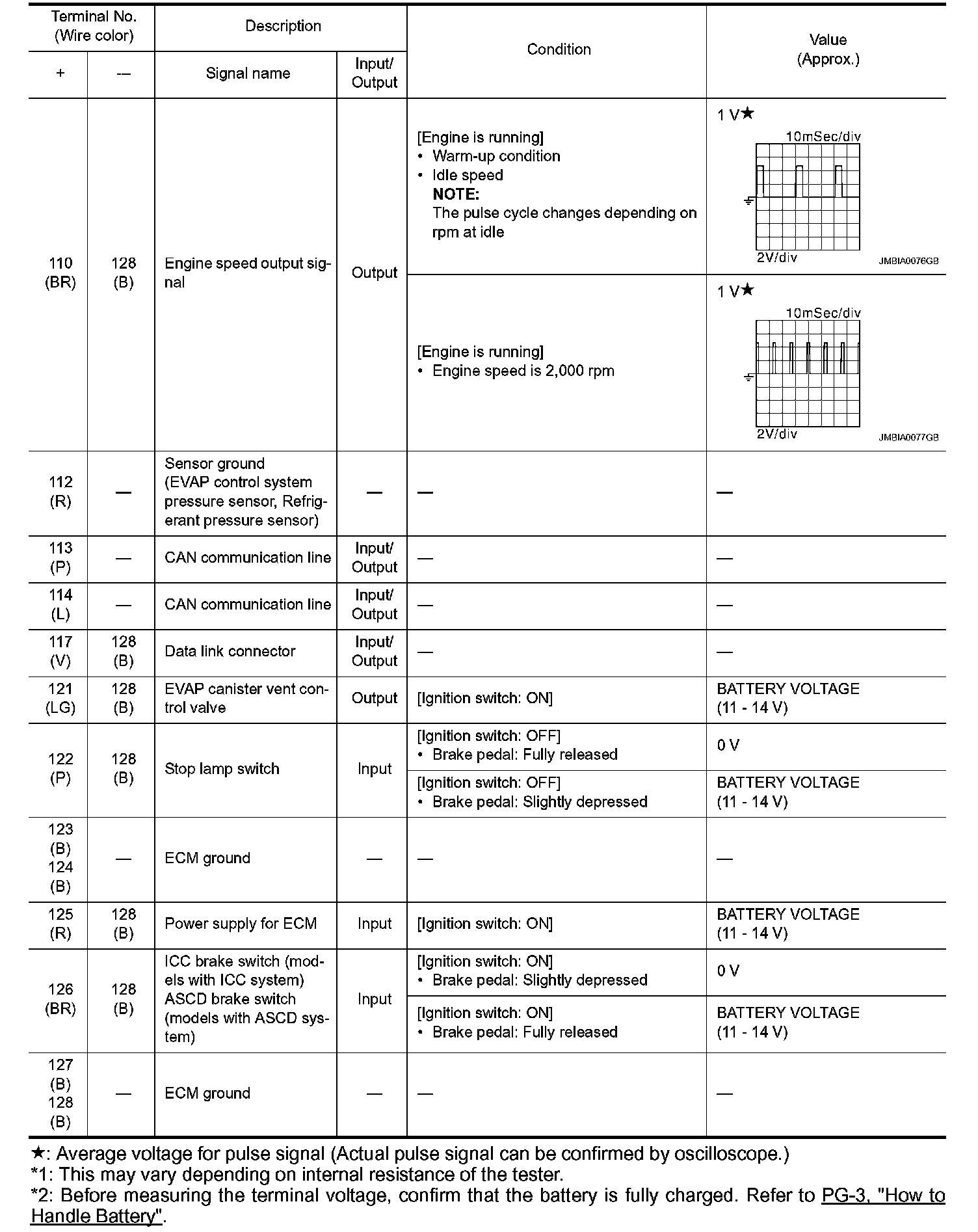 - Specification data are output/input values which are detected or supplied by the ECM at the connector.