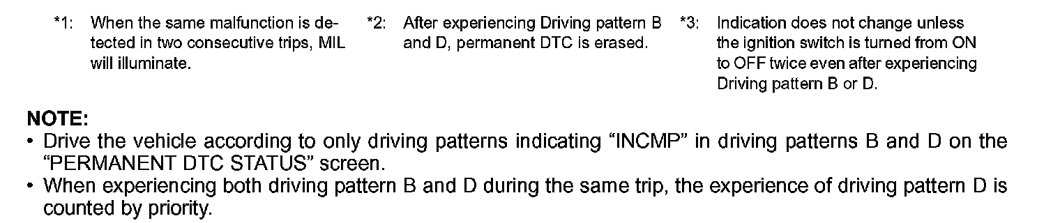 - If self-diagnosis results are erased during the trip of driving pattern B or D, an experience of driving pattern B and D during the same trip is not counted up.