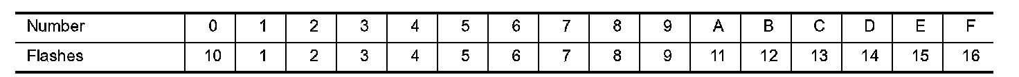 A particular trouble code can be identified by the number of four-digit numeral flashes per the following.