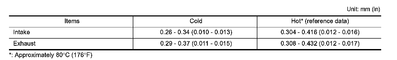 VALVE CLEARANCE