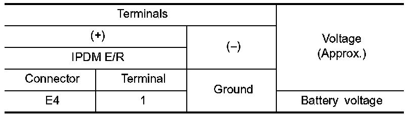 3. Check voltage between IPDM E/R harness connector and the ground.