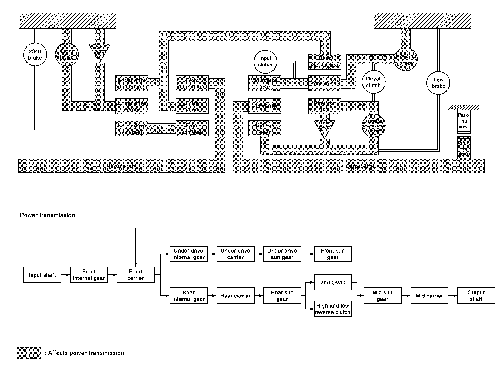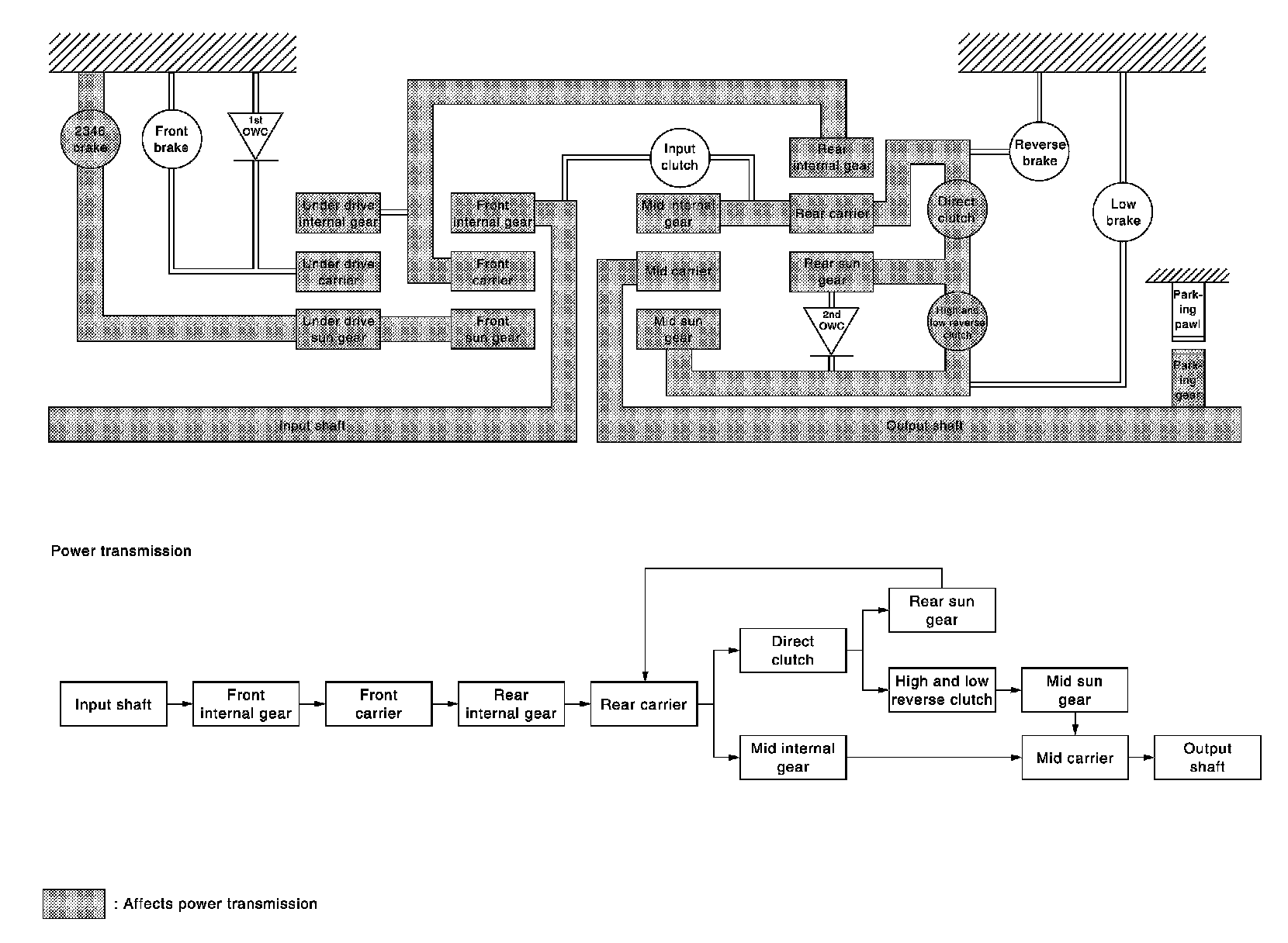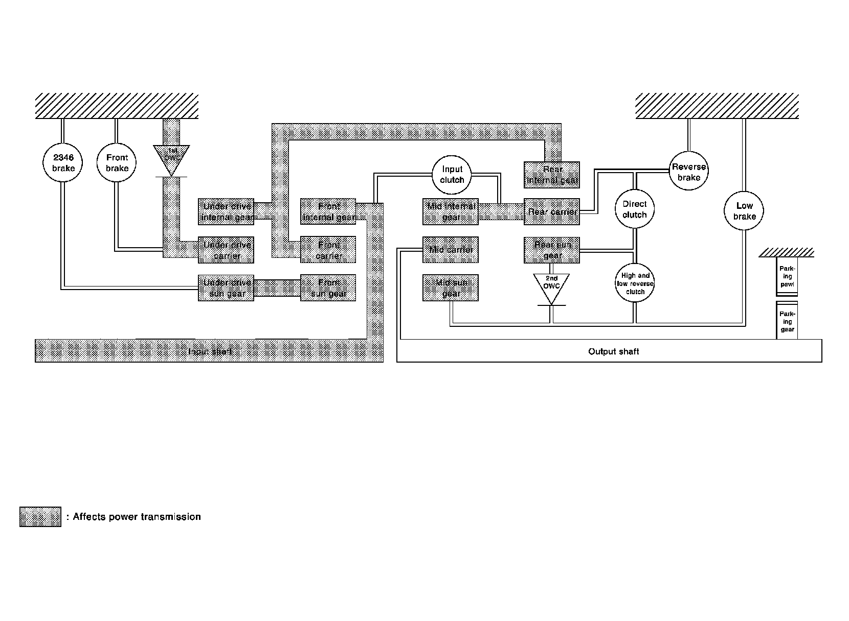- The same as for the "N" position, since the low brake is released, so torque from the input shaft drive is not transmitted to the output shaft.