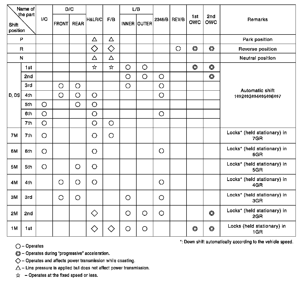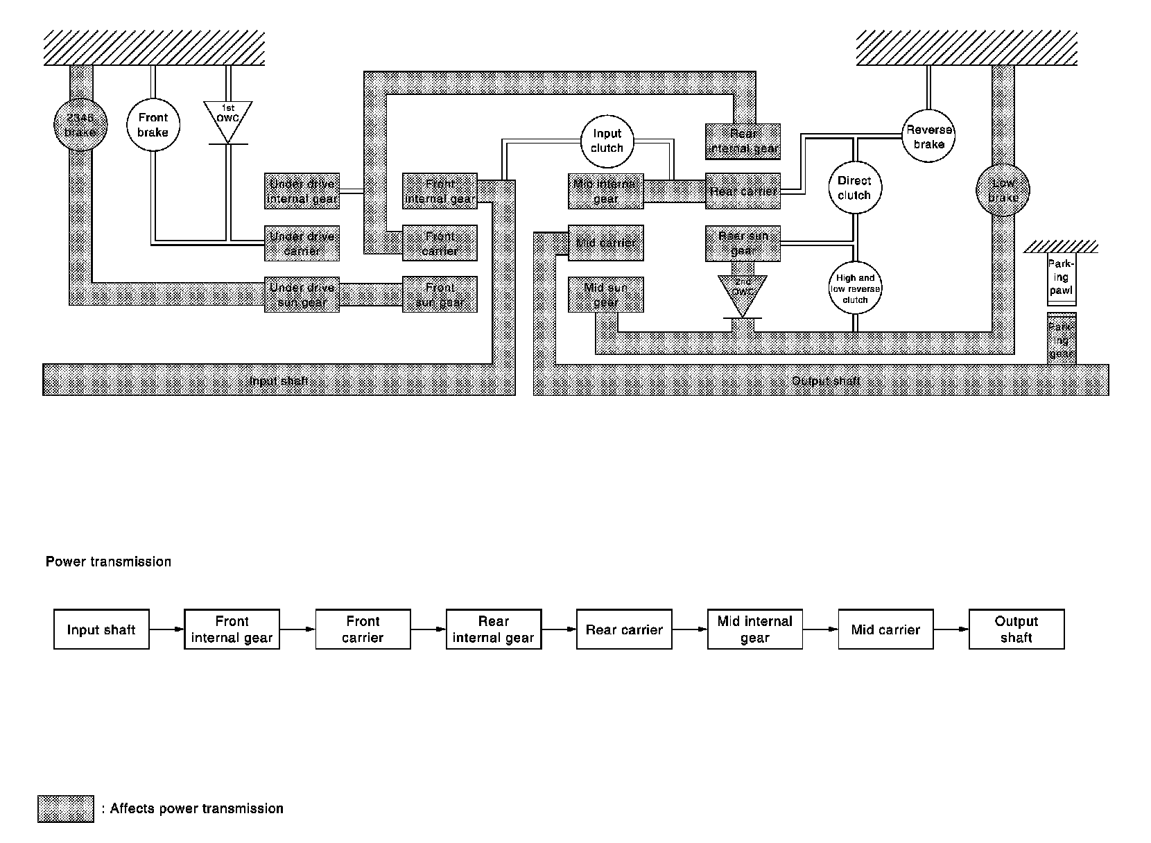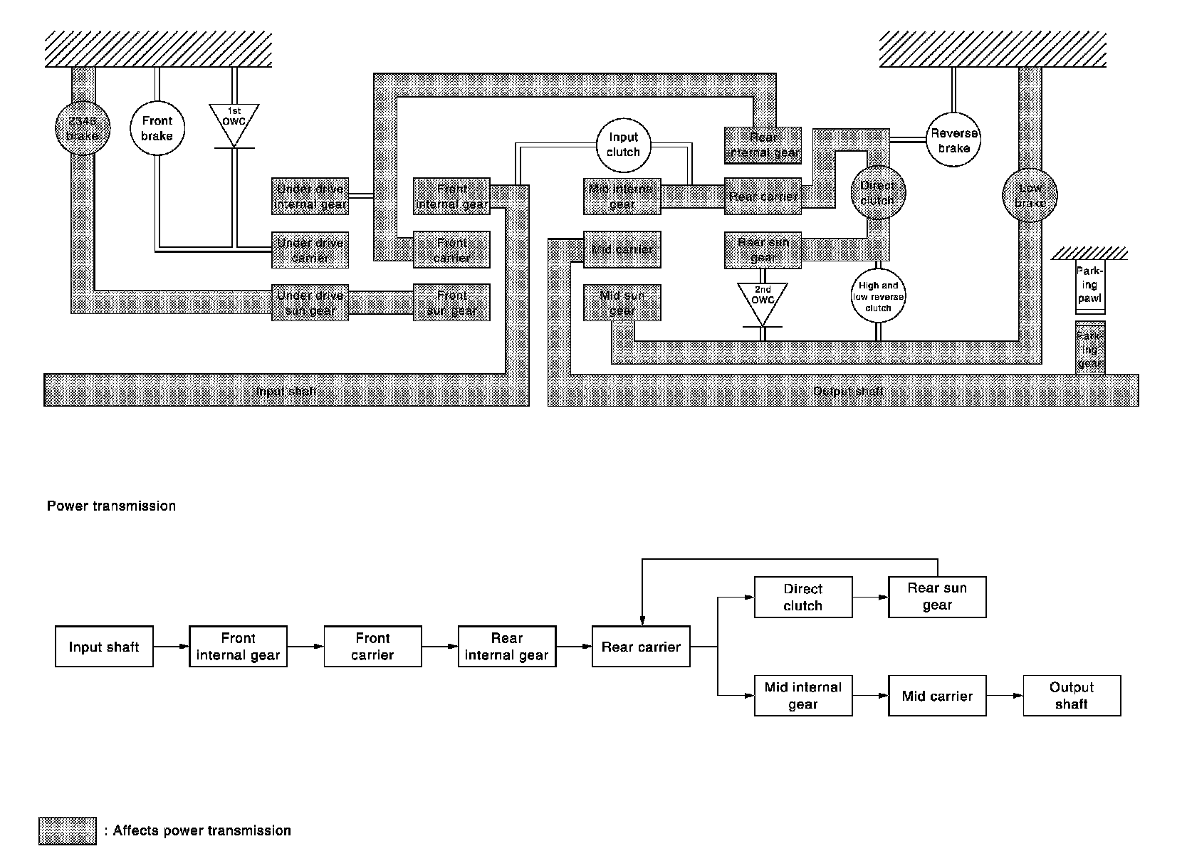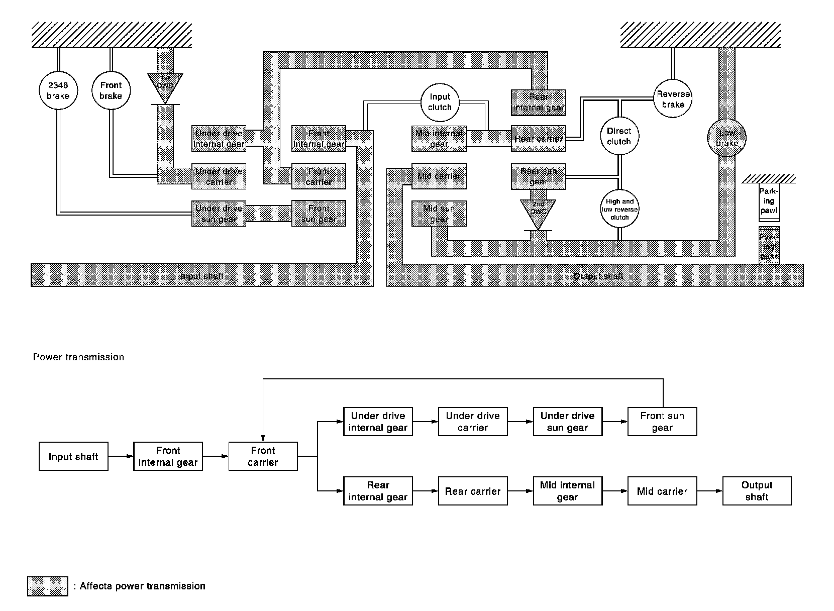 - The same as for the "N" position, since the low brake is released, so torque from the input shaft drive is not transmitted to the output shaft.