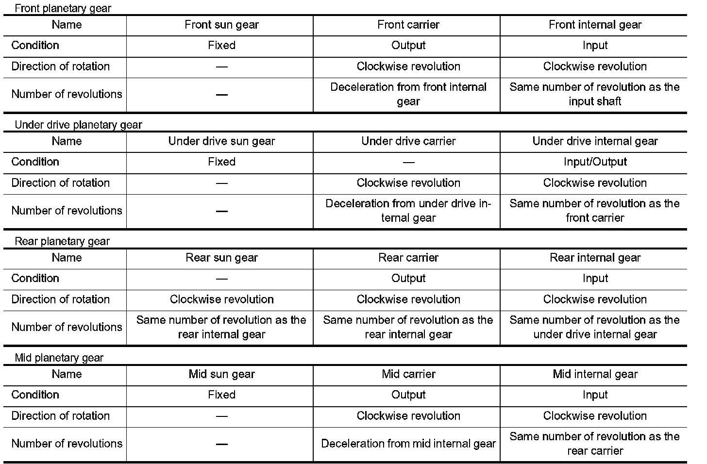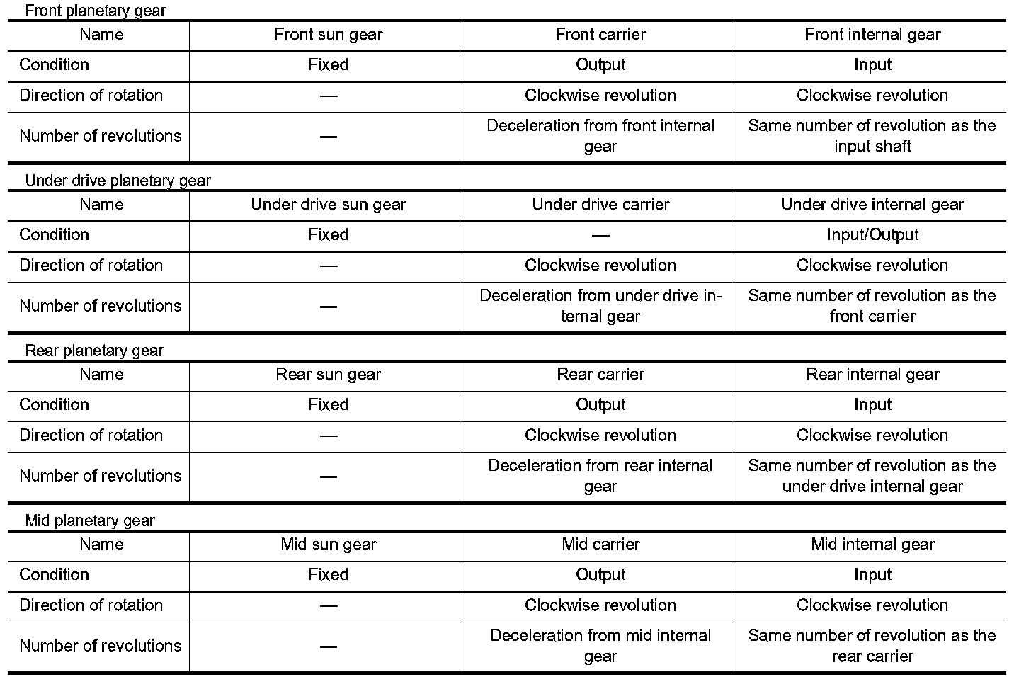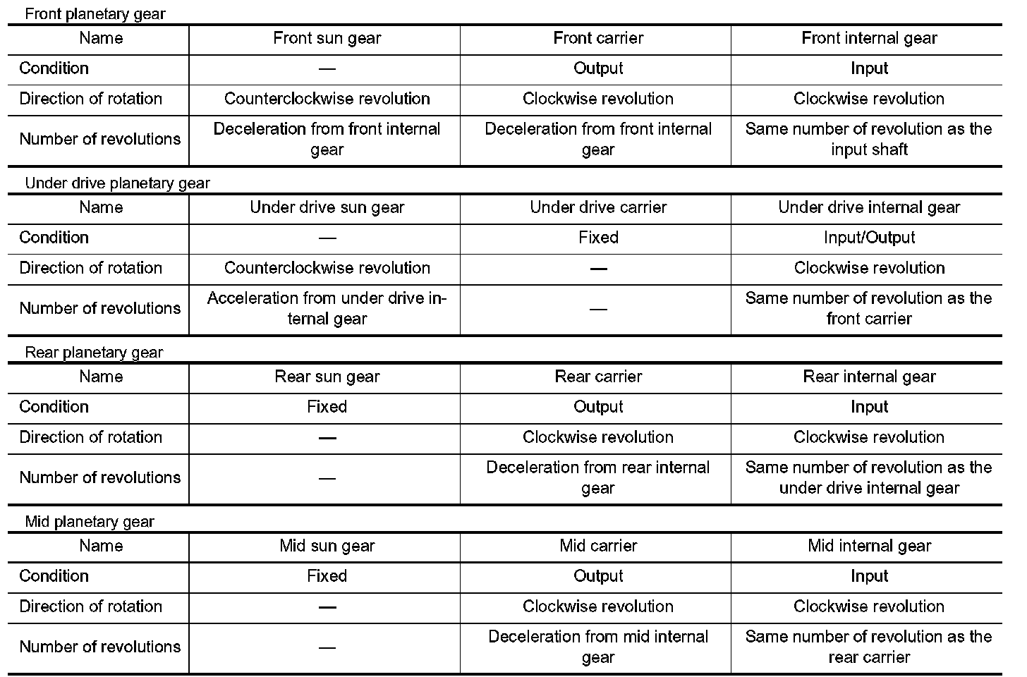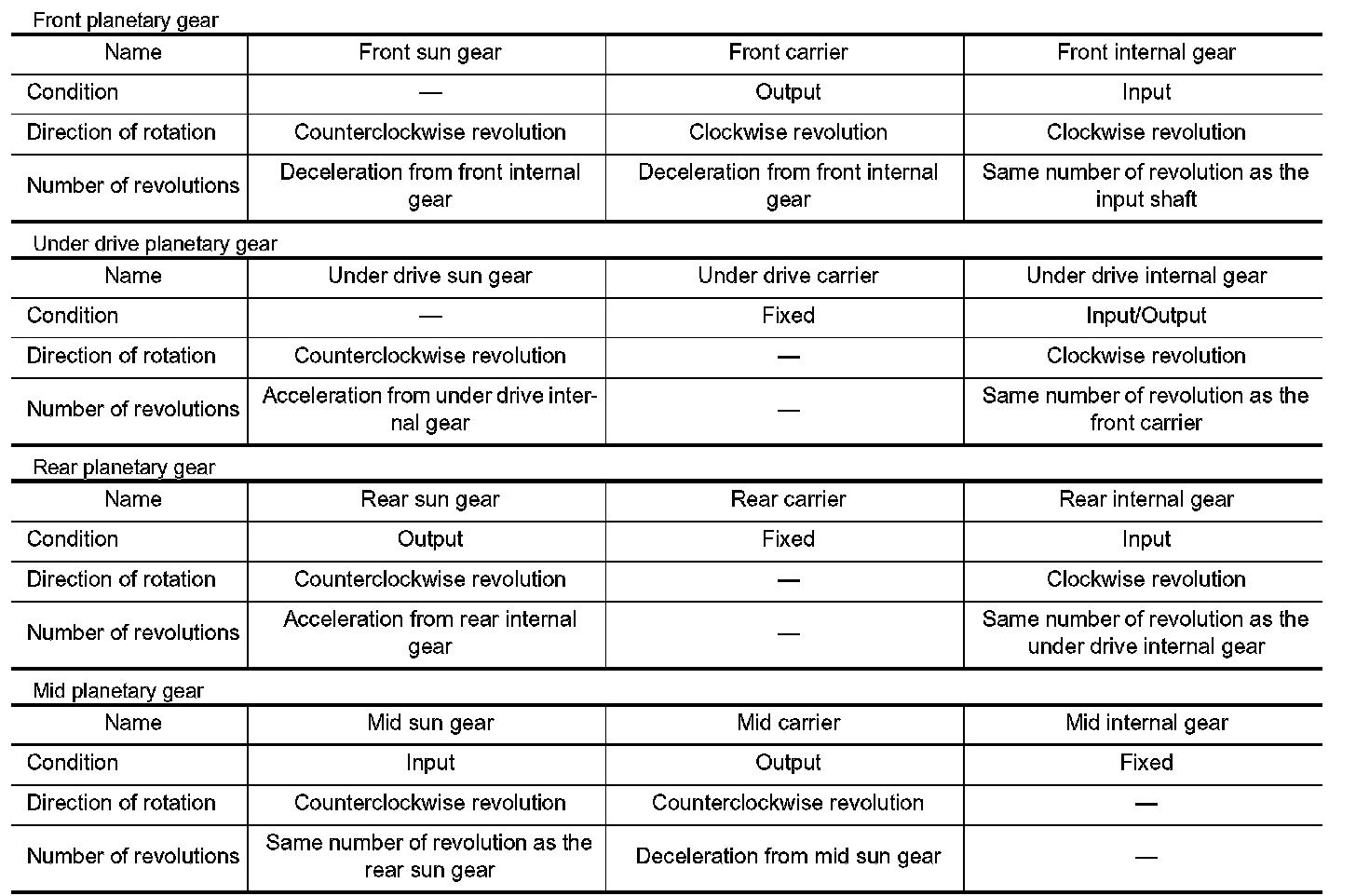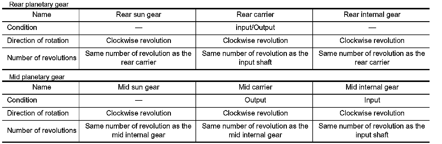 - The rear carrier and the mid internal gear are fixed by the reverse brake.