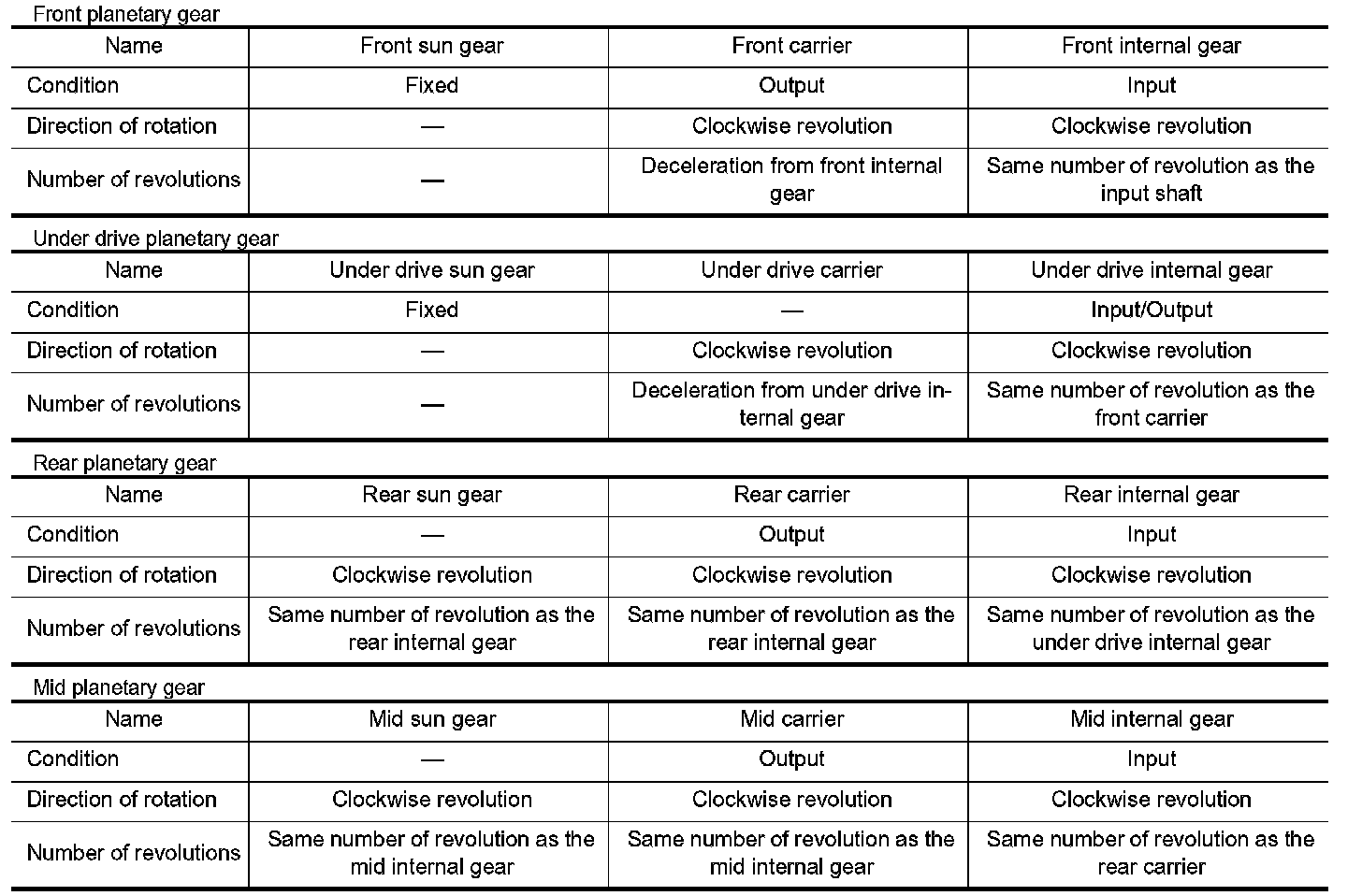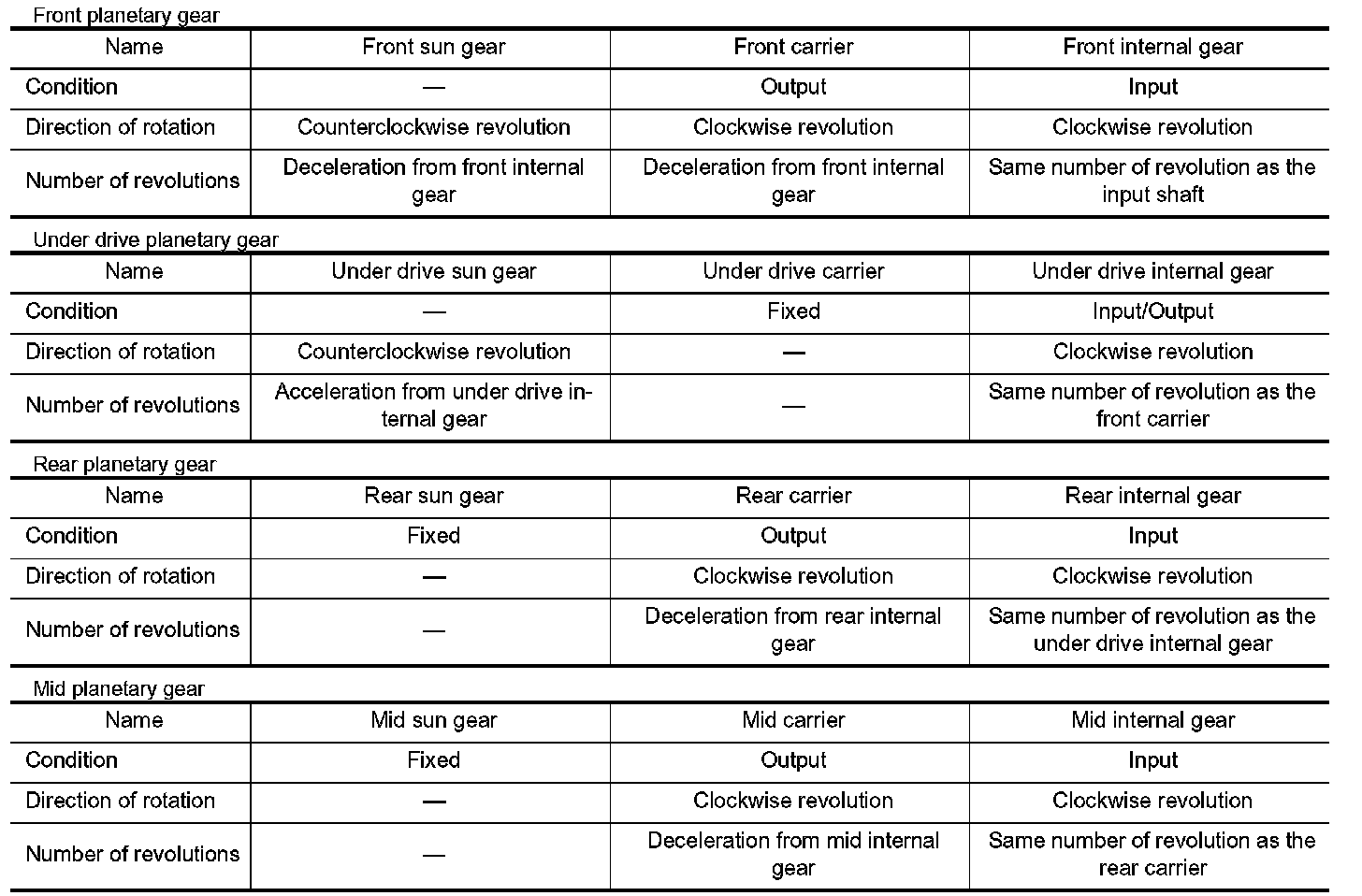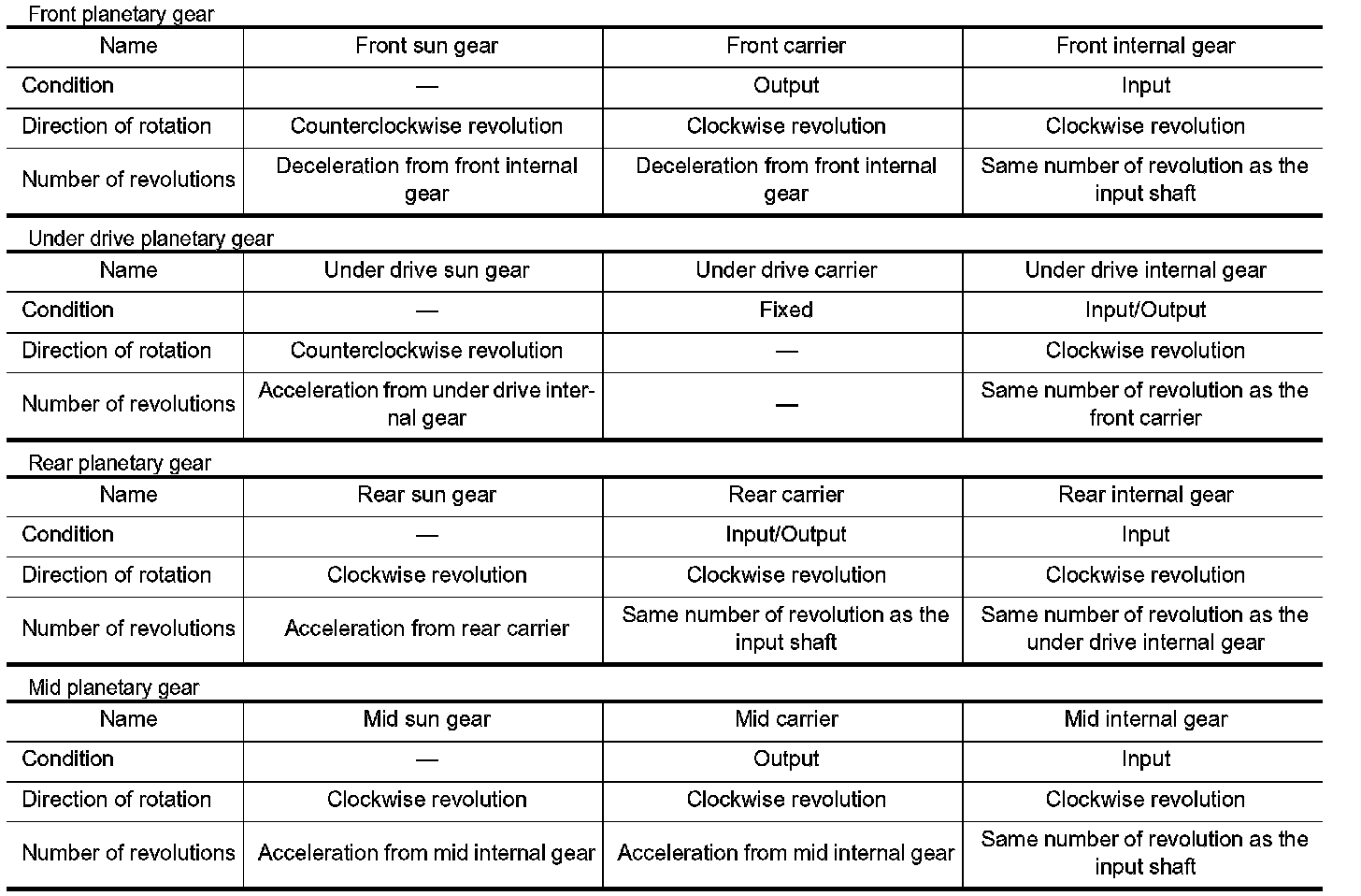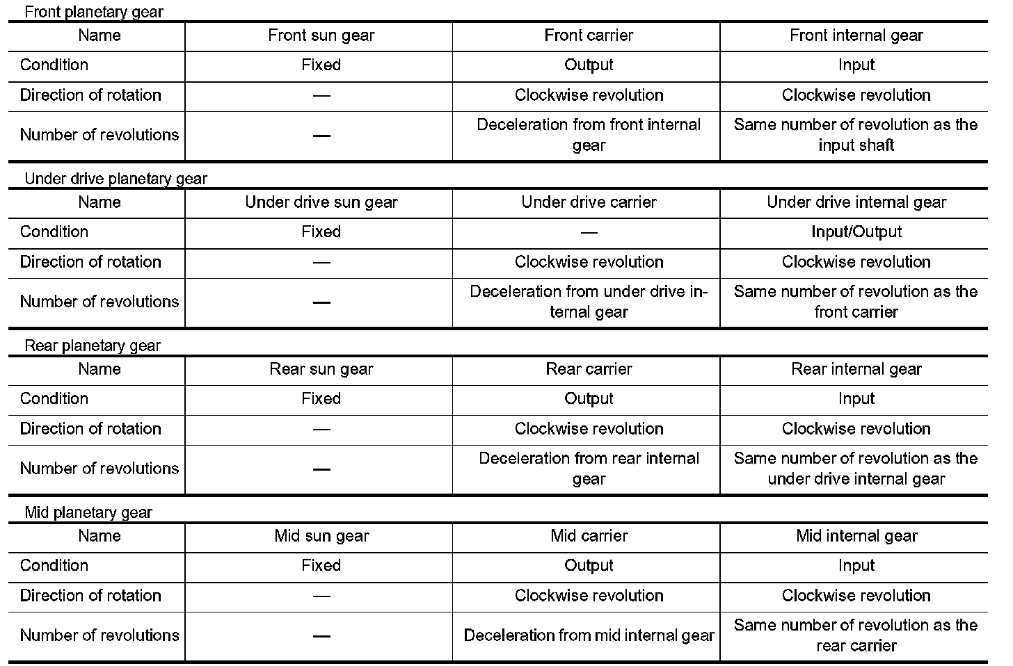 - The rear carrier and the mid internal gear are fixed by the reverse brake.