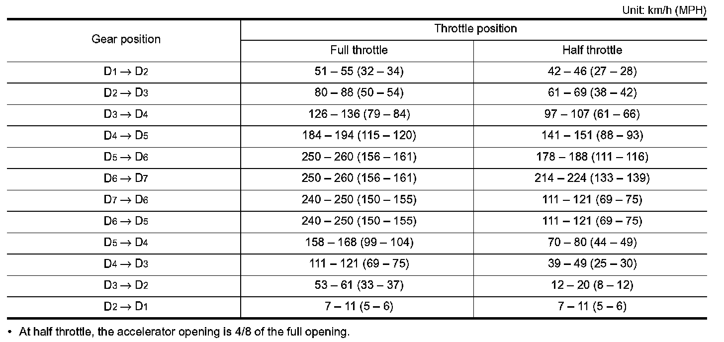 Vehicle Speed at Which Gear Shifting Occurs