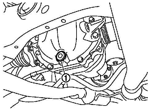 3. Set a gasket on drain plug (1) and install it to final drive assembly and tighten to the specified torque. (M/T), (A/T).