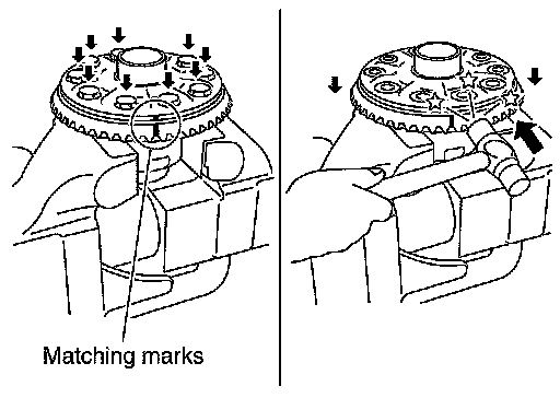 - Bearing caps are manufactured as integral molding. Use the matching marks to them in their original positions.