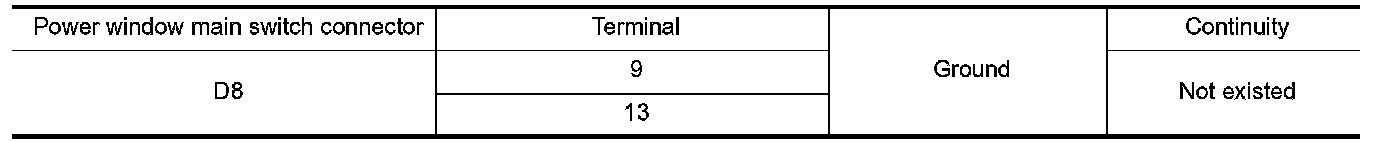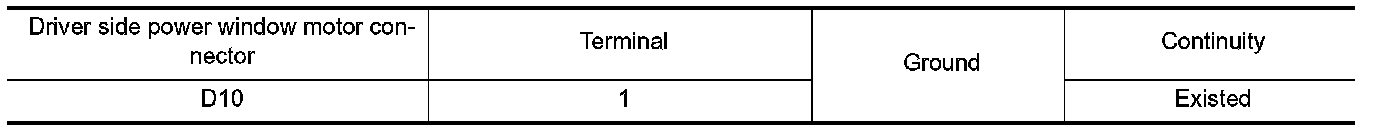 2. Check continuity between driver side power window motor harness connector and ground.