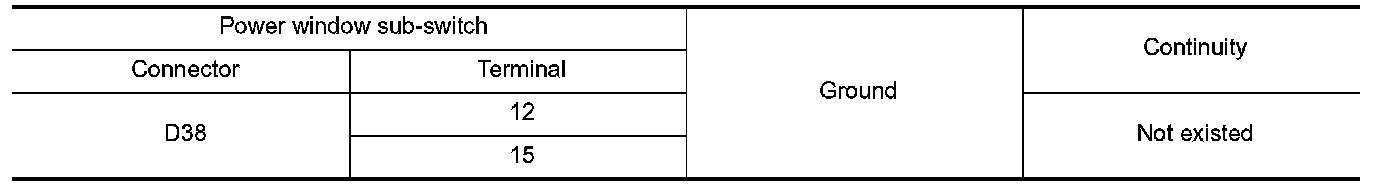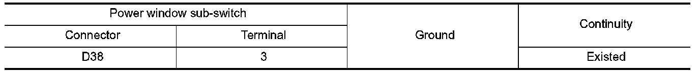 4. Check continuity between power window sub-switch connector and ground.