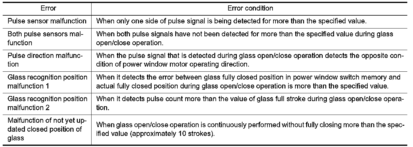 Perform initial operation to recover when switched to fail-safe mode. However, it switches back to fail-safe control when malfunction is found in power window switch or in motor.
