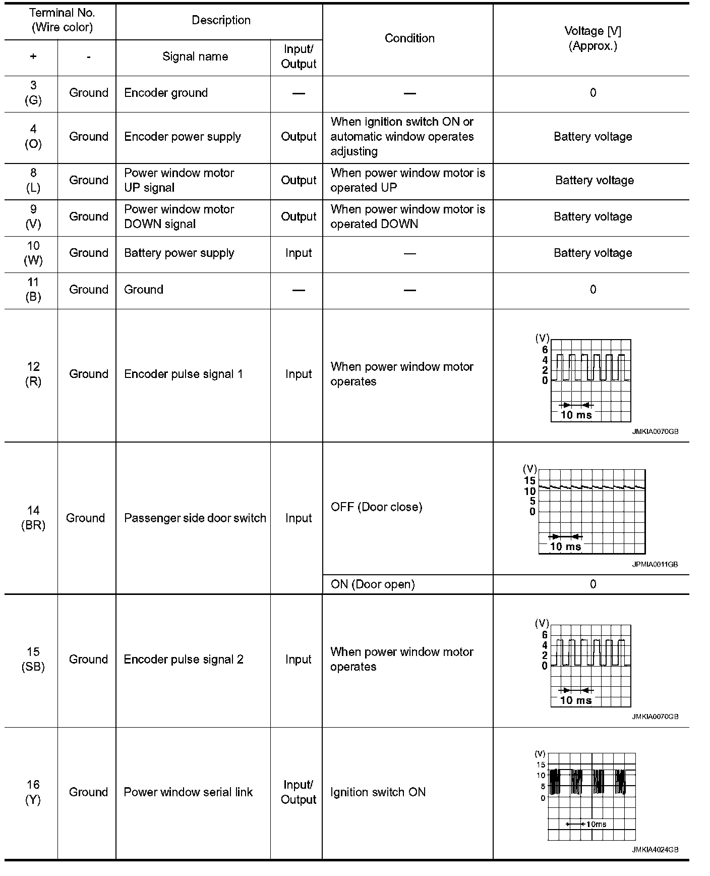 Pinout Values and Diagnostic Parameters