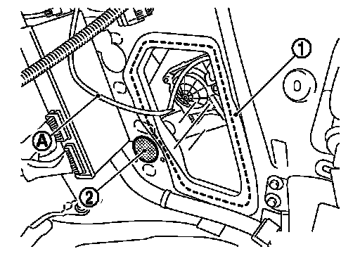 4. Remove quarter window glass regulator assembly fixing nut as shown in the figure with socket wrench (A).