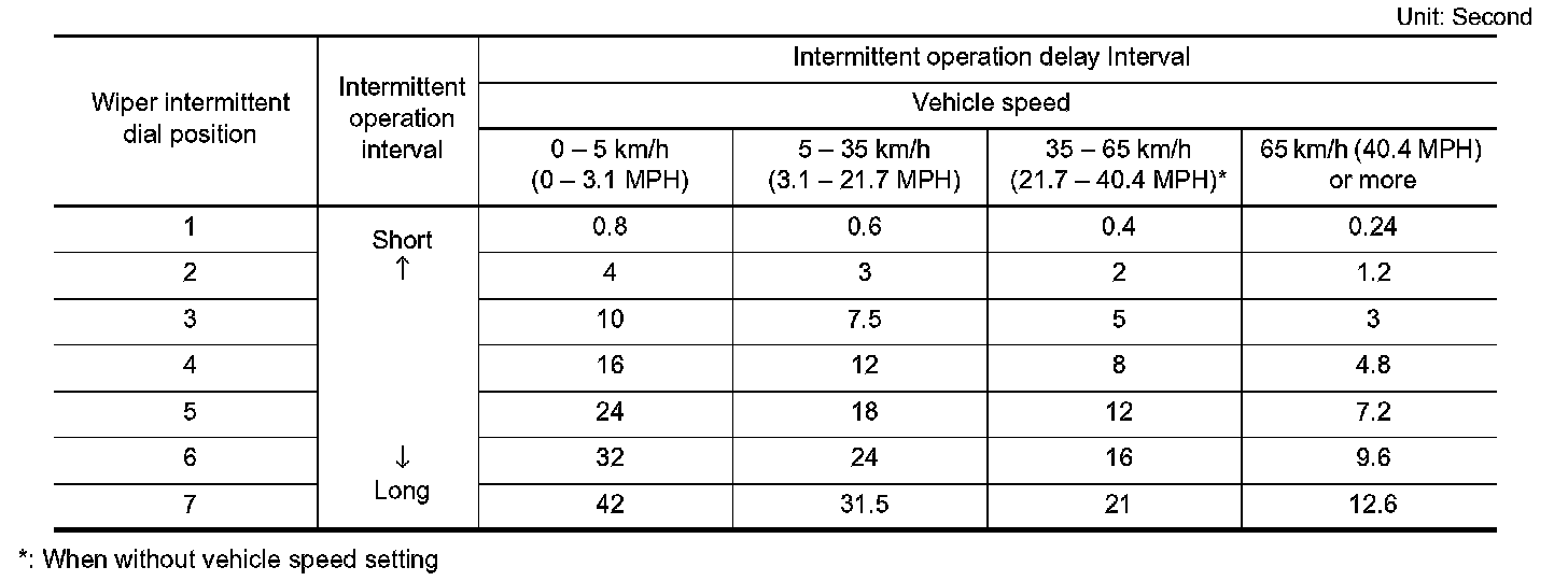 - BCM calculates the intermittent operation delay interval from the following