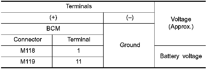3. Check voltage between BCM harness connector and ground.