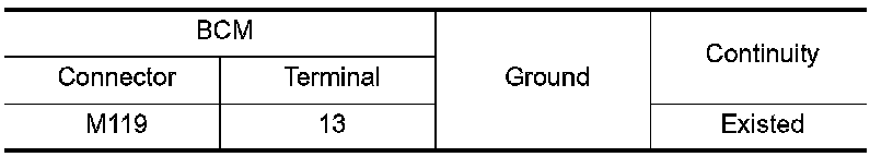 Check continuity between BCM harness connector and ground.