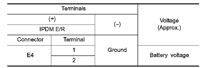 3. Check voltage between IPDM E/R harness connector and the ground.