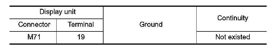 4. Check continuity between display unit harness connector and ground.