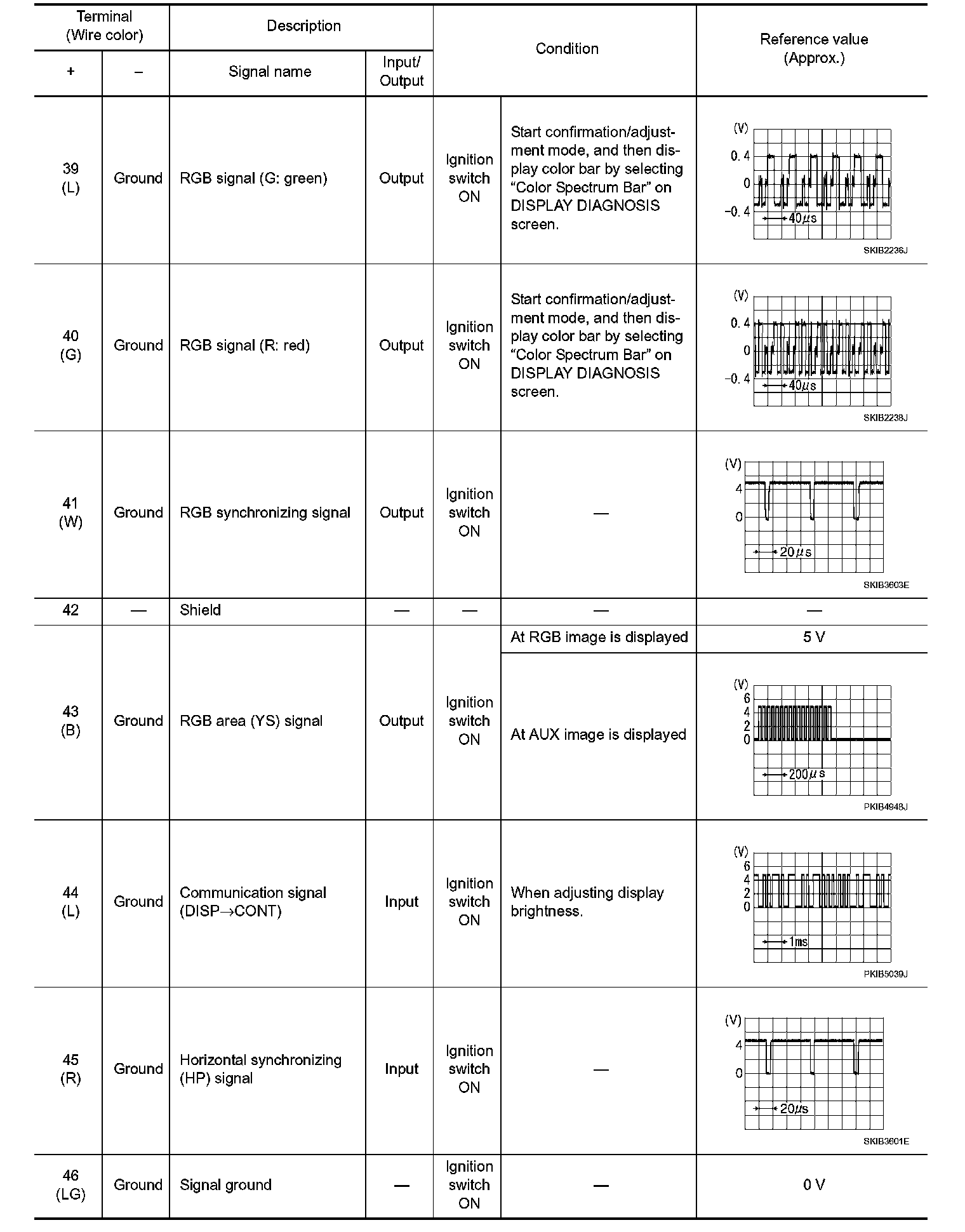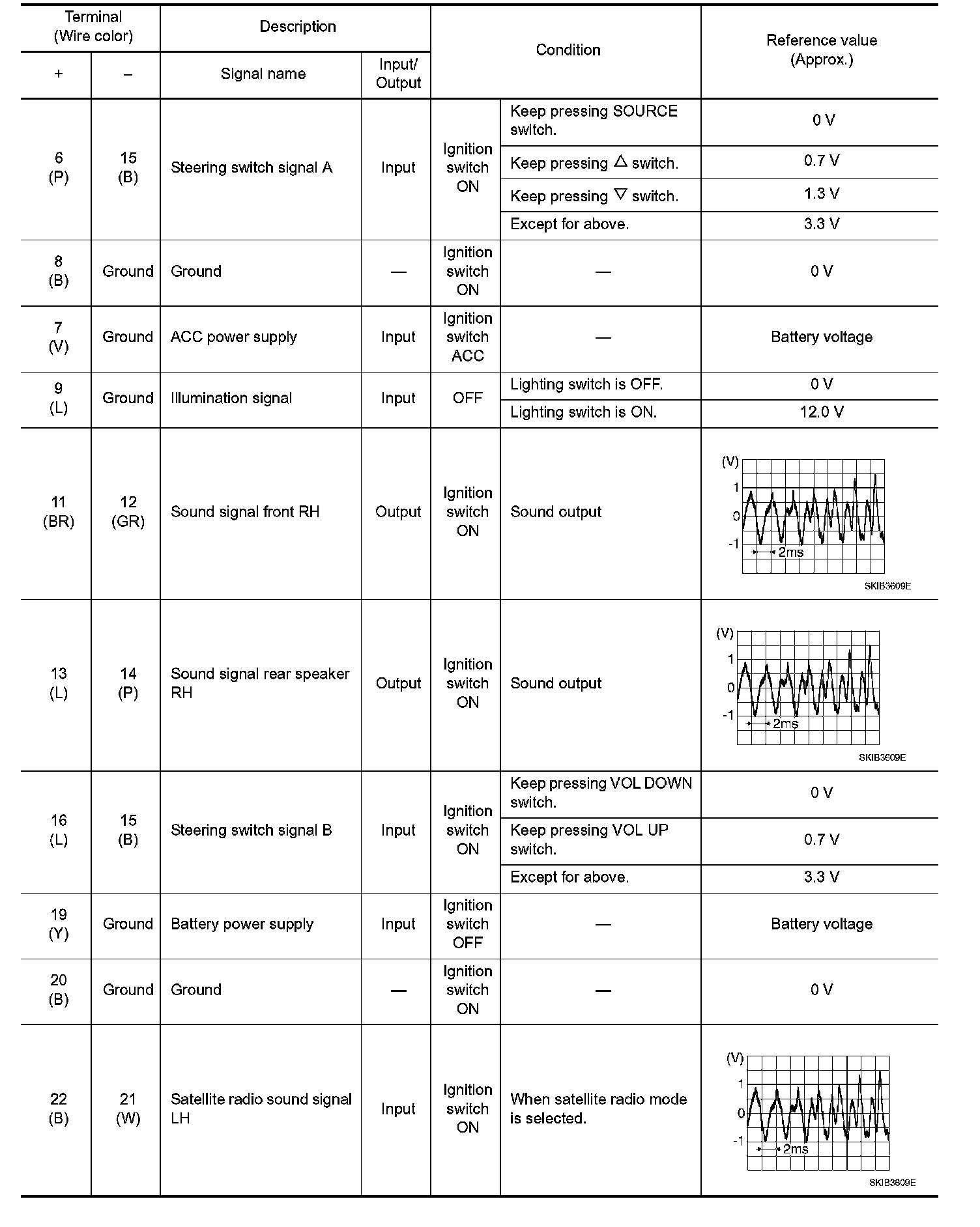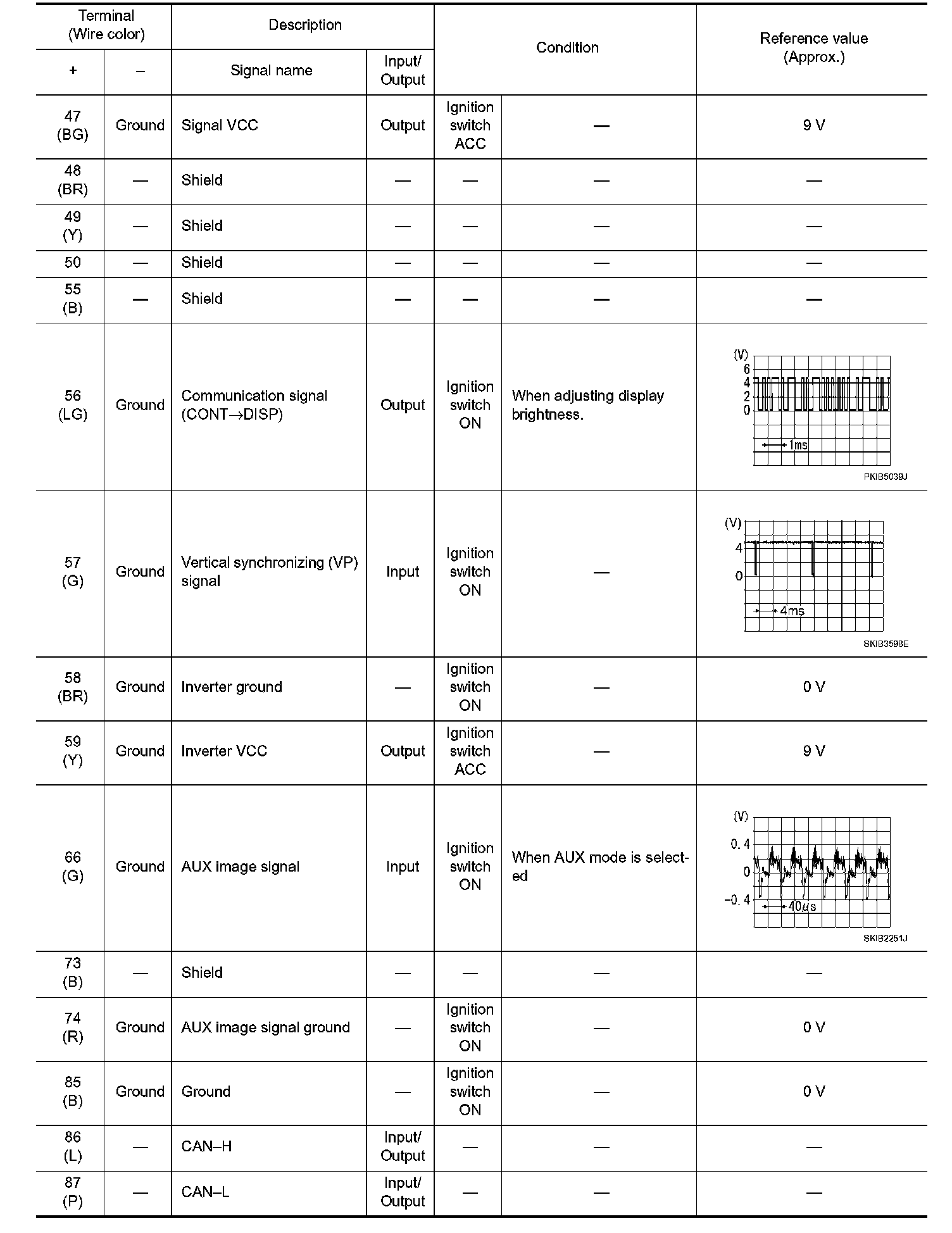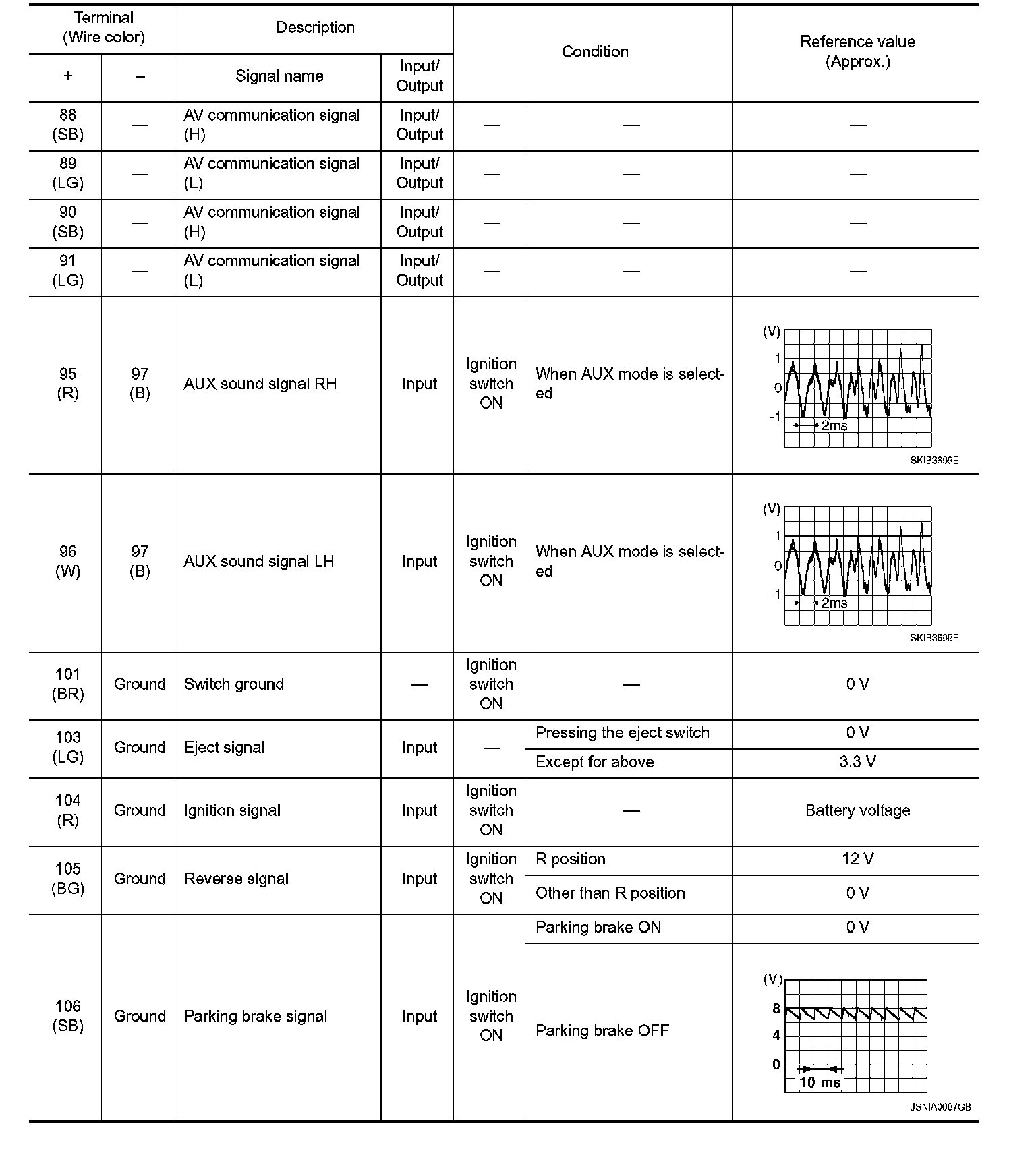 Pinout Values and Diagnostic Parameters