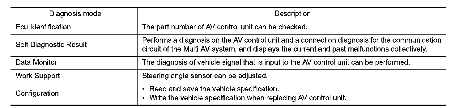 DIAGNOSIS SYSTEM (AV CONTROL UNIT)