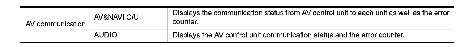 When "AV communication" of "CAN DIAG Support Monitor" is selected, the following function will be performed.