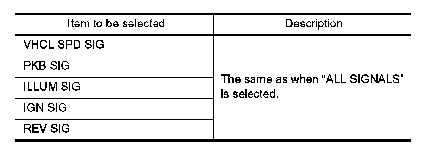 Allows the technician to select which vehicle signals should be displayed and displays the status of the selected vehicle signals.