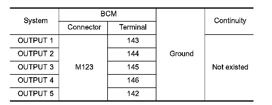 1.CHECK OUTPUT 1 - 5 SYSTEM CIRCUIT FOR OPEN