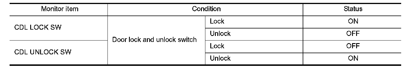 Check ("CDL LOCK SW ", "CDL UNLOCK SW") in "Data Monitor" mode using CONSULT-III.
