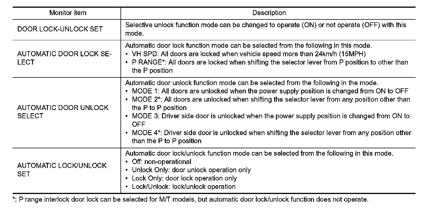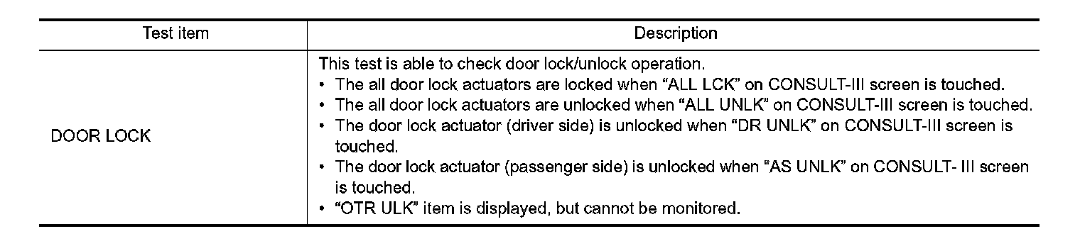 DOOR LOCK : CONSULT-III Function (BCM - DOOR LOCK)