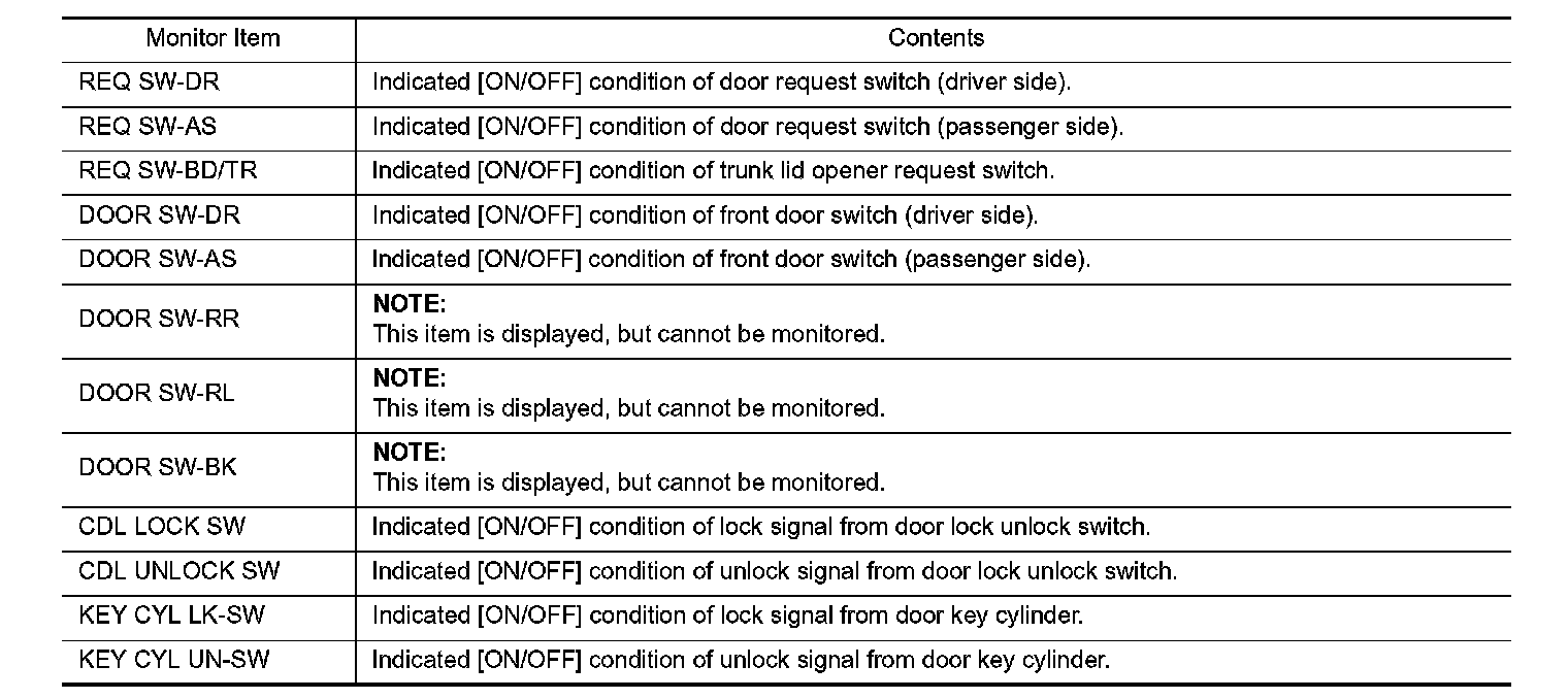 CONSULT-III Function (BCM - Door Lock)