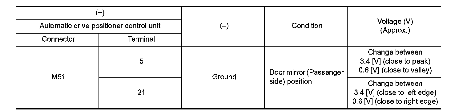 - Automatic drive positioner control unit calculates the door mirror position according to the change of the voltage of 2 sensor input terminals.