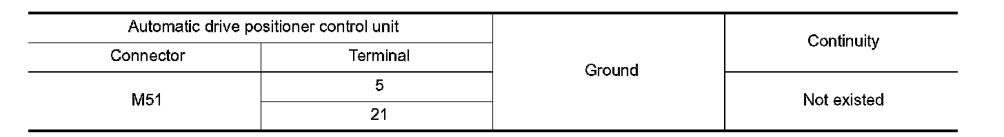 4. Check continuity between automatic drive positioner control unit harness connector and ground.
