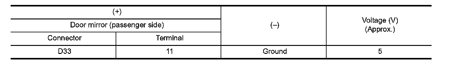 3. Check voltage between door mirror (passenger side) harness connector and ground.