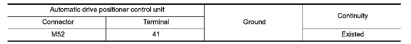2. Check continuity between automatic drive positioner control unit harness connector and ground.