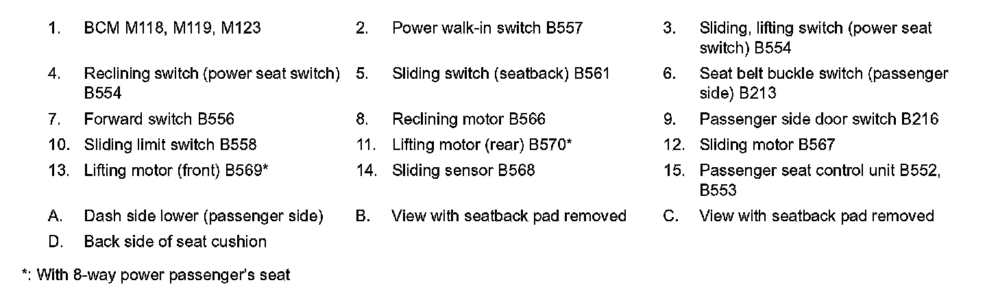 POWER SEAT FUNCTION : Component Parts Location